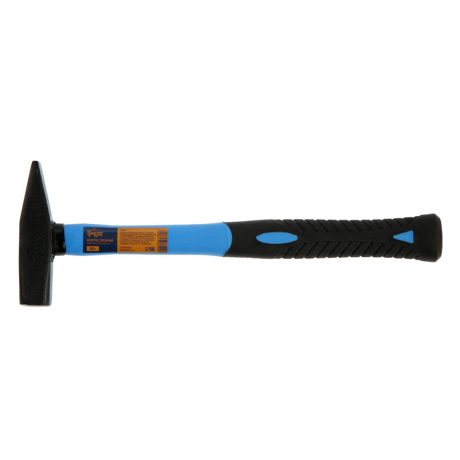Молоток слесарный тундра, квадратный боек, фиберглассовая обрезиненная рукоятка, 300 г