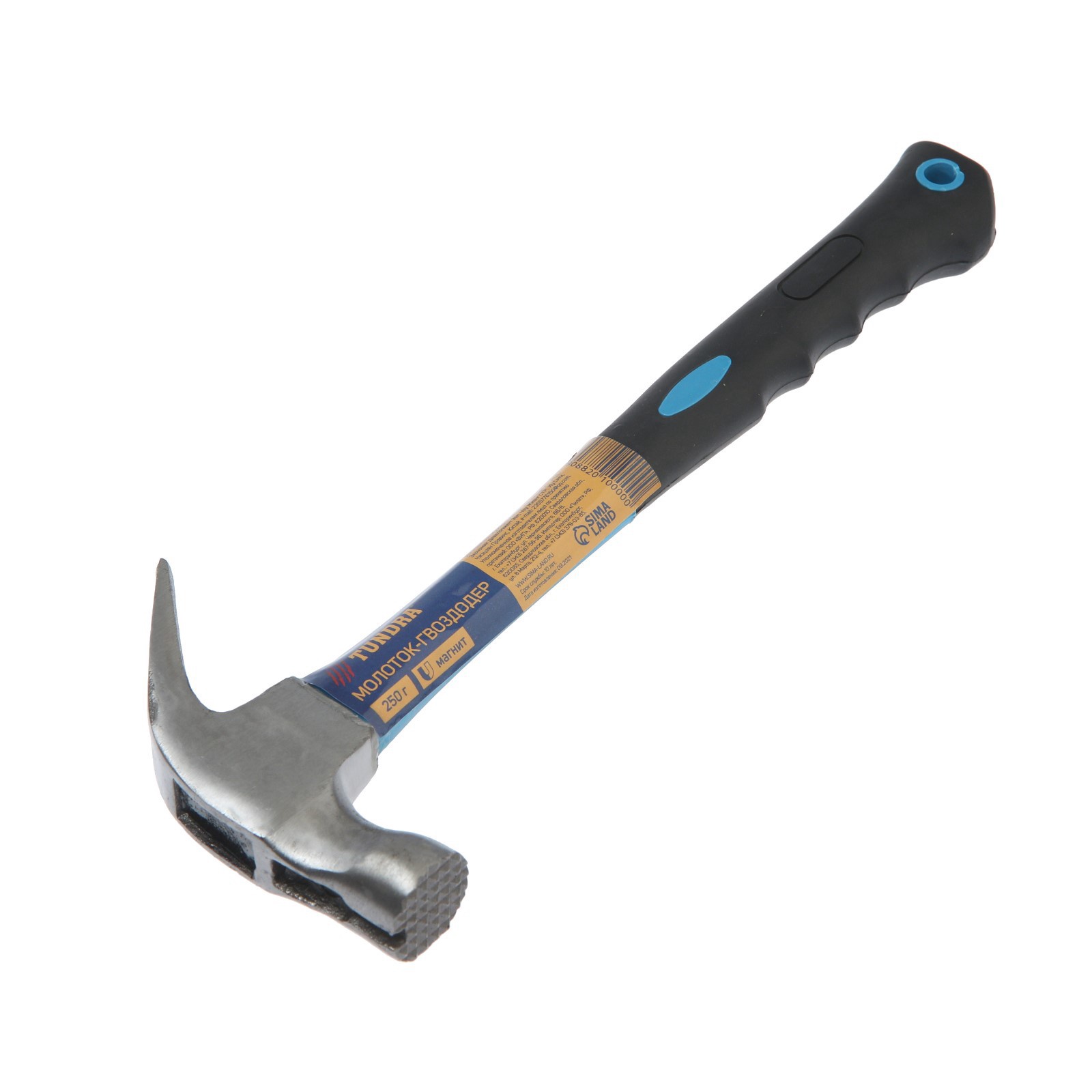 Молоток-гвоздодер тундра, боек с магнитом, фиберглассовая 2к рукоятка, 250 г