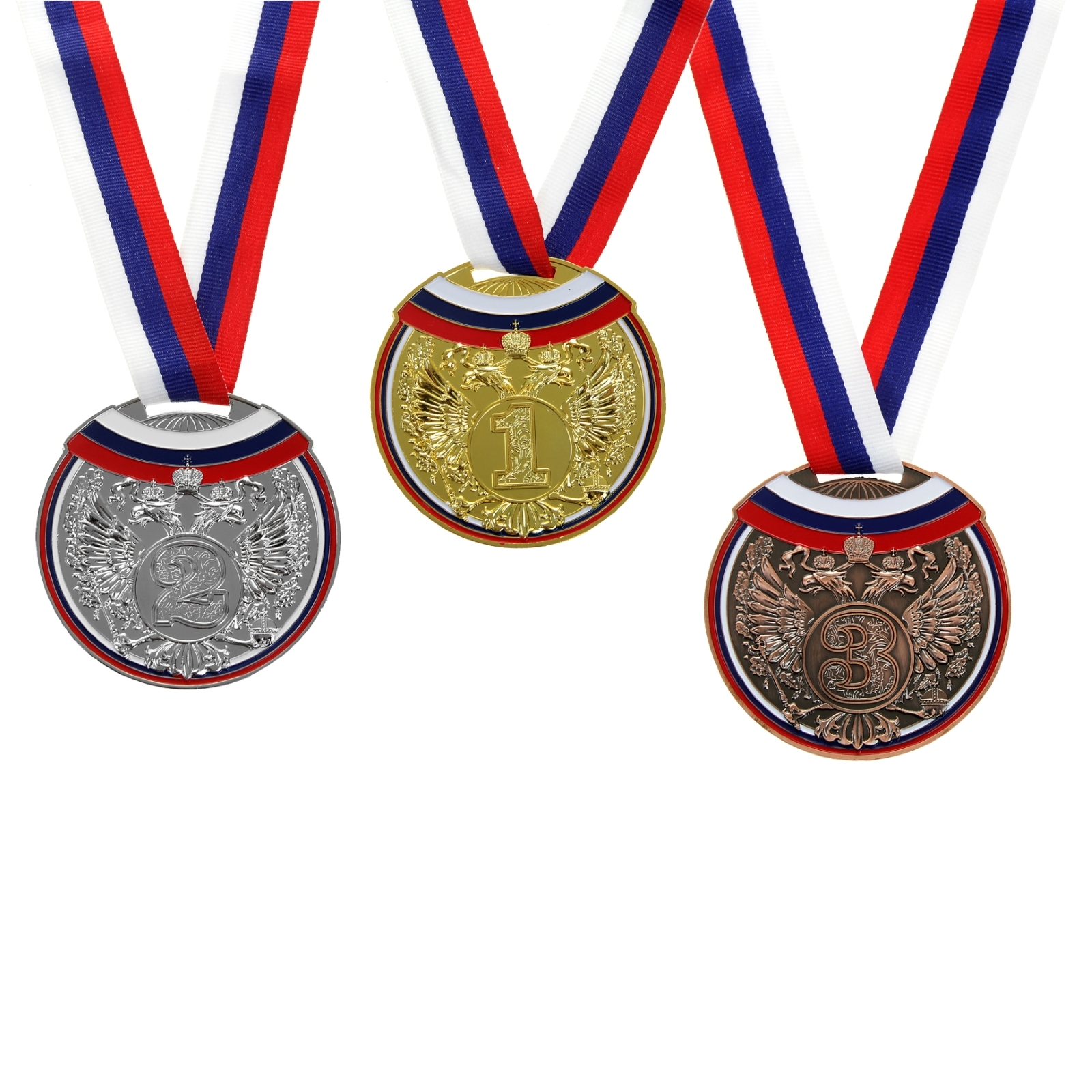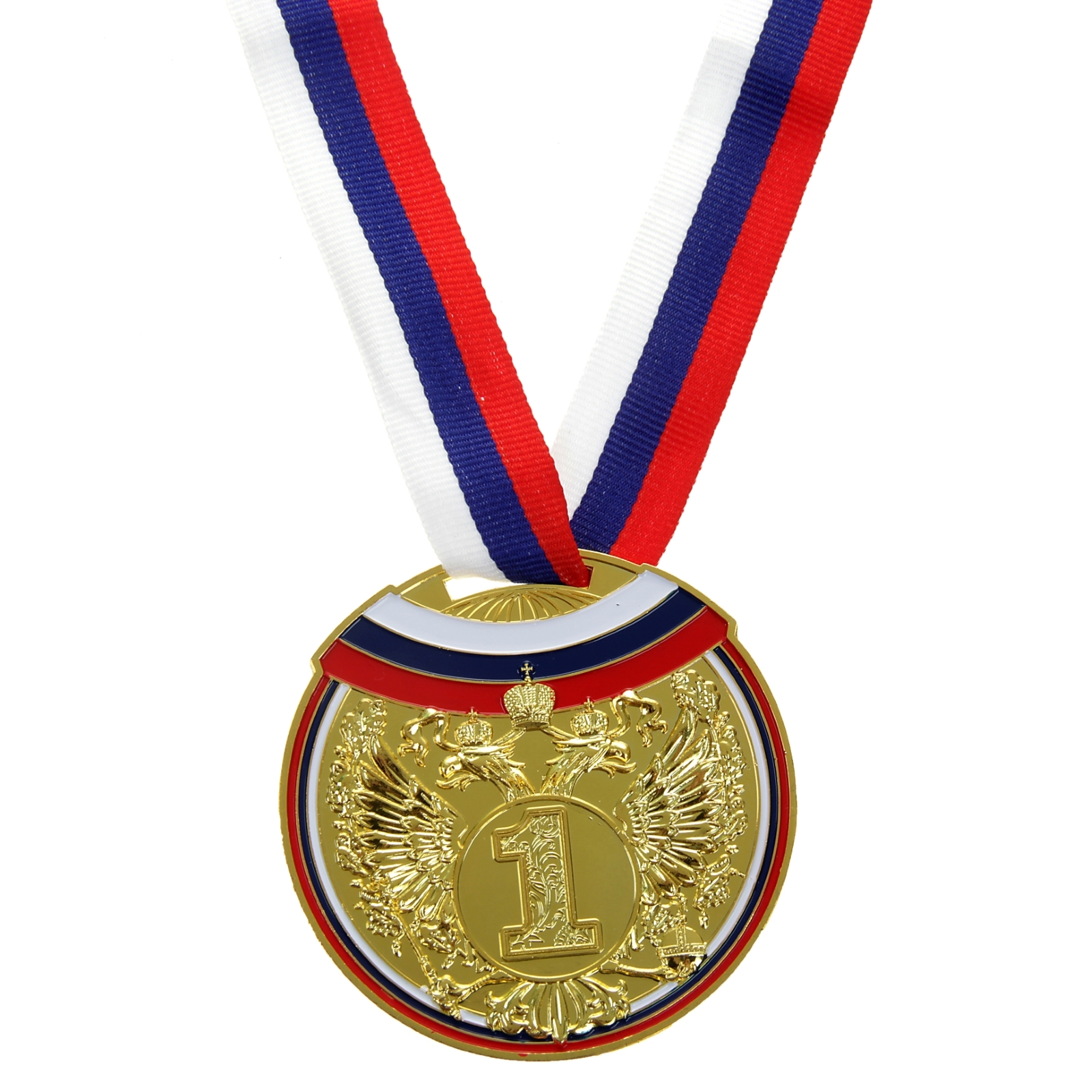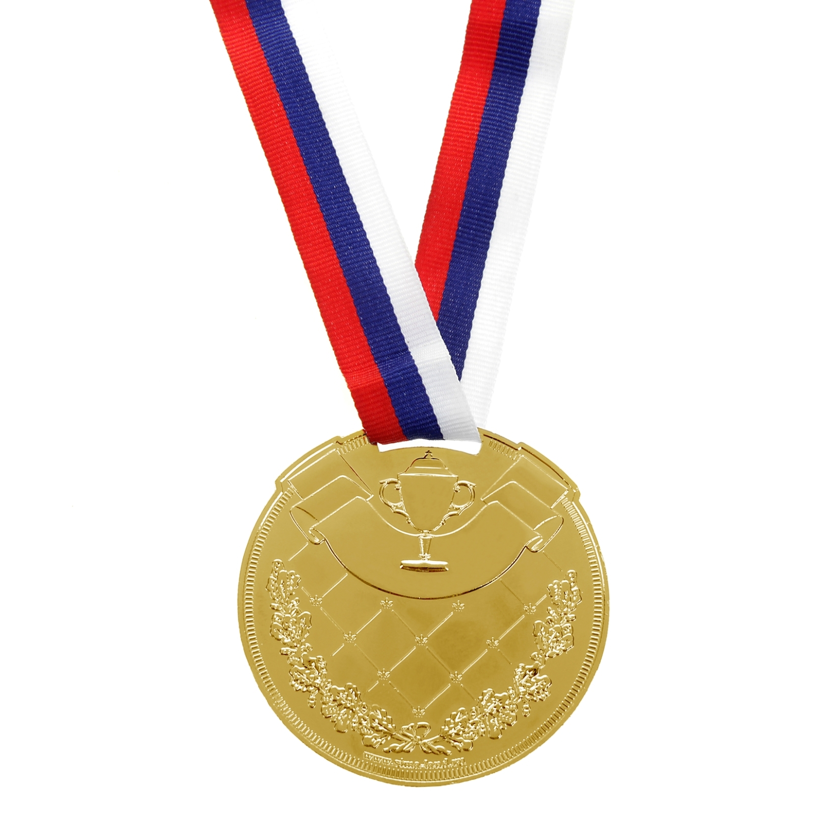 Медаль призовая 014, d= 7 см. 1 место, триколор. цвет золото. с лентой. Медаль — знак отличия, которым награждают самых достойных. Она вручается лишь тем, кто проявил настойчивость и волю к победе. Каждое достижение — это важное событие, которое должно остаться в памяти на долгие годы. Любое спортивное состязание, профессиональное или среди любителей, любое корпоративное мероприятие — отличный повод для того, чтобы отметить лучших из лучших. Цвет: Золотистый Диаметр, мм: 70 parts count: 0 Вид упаковки: Пакет Материал: Металл Вид спорта: Универсальный Наличие символики РФ: Да Наличие ленты: Да Призовое место: 1 место  развернуть описание ▼
