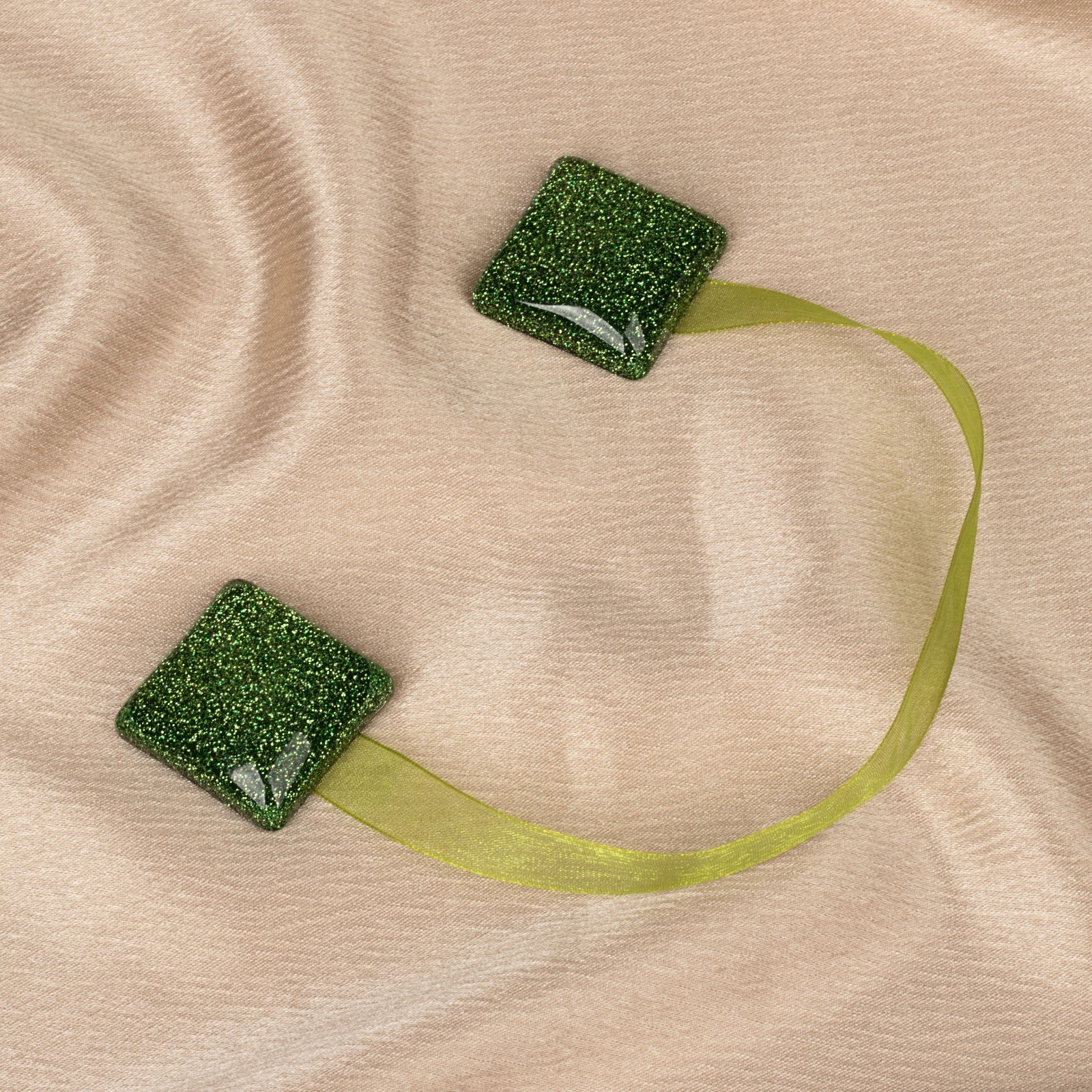 Подхват для штор «квадрат блёстками», 3,5 3,5 см, цвет зелёный