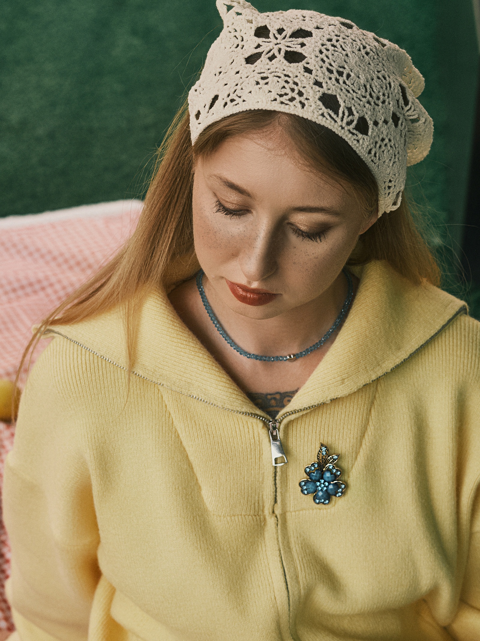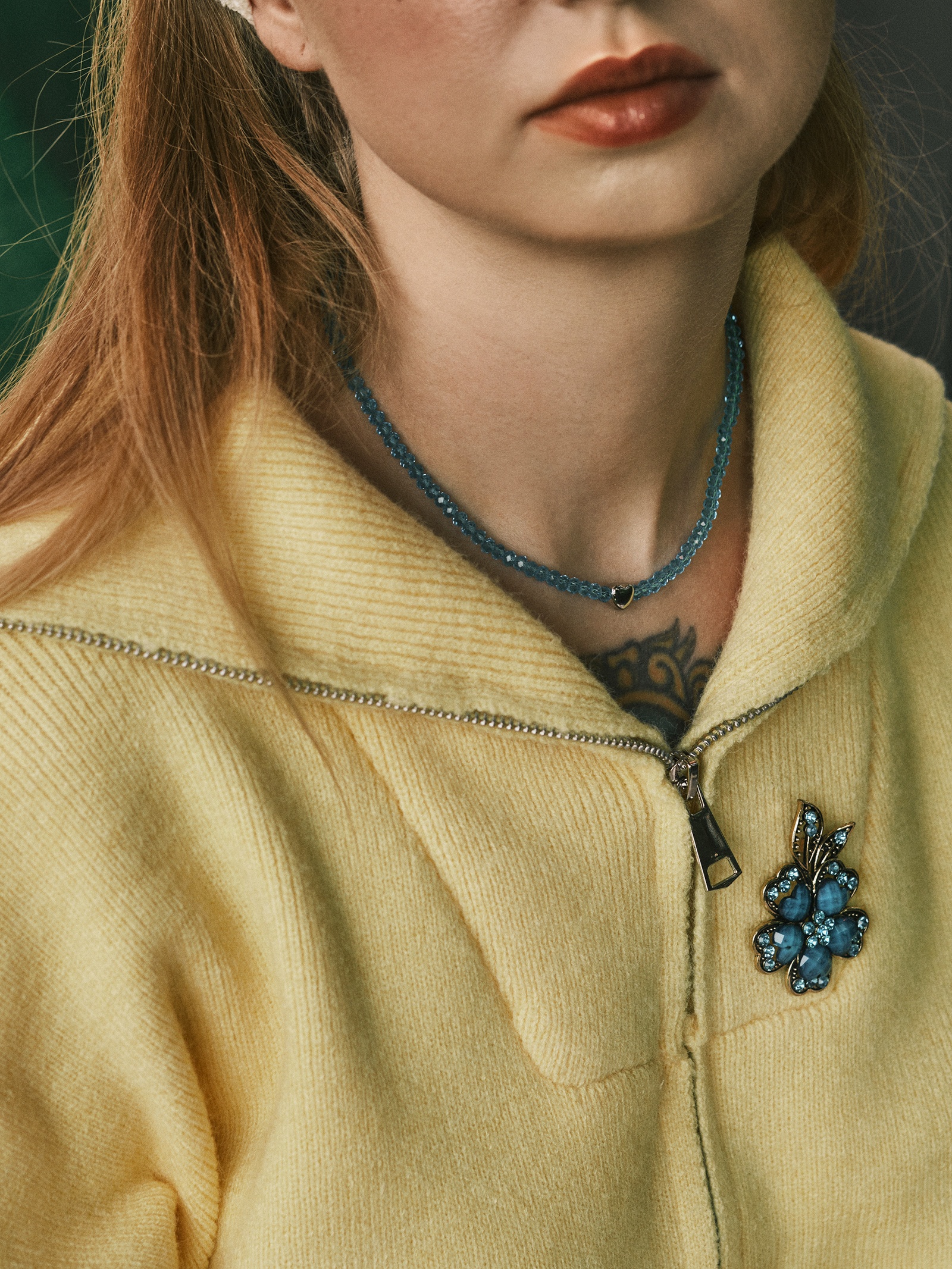 Брошь «цветок желаний», цвет морской в чернёном золоте