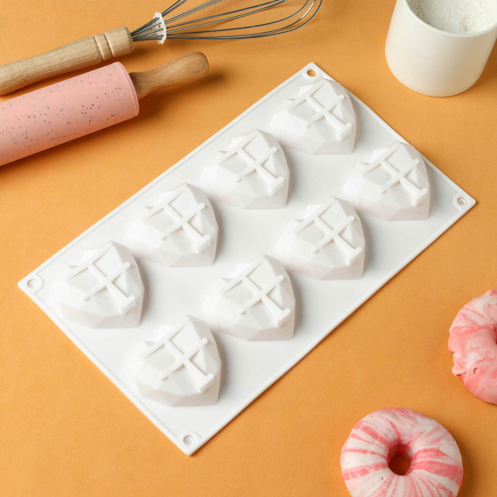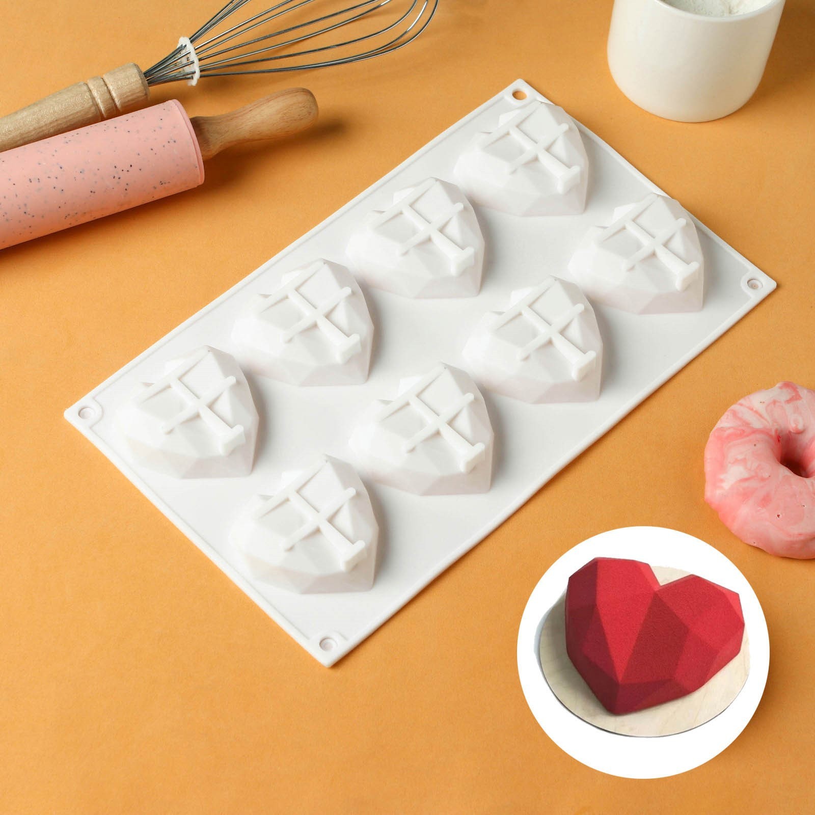 Форма для муссовых десертов и выпечки Konfinetta «сердце», силикон, 29x17x2 см, 8 ячеек, цвет белый