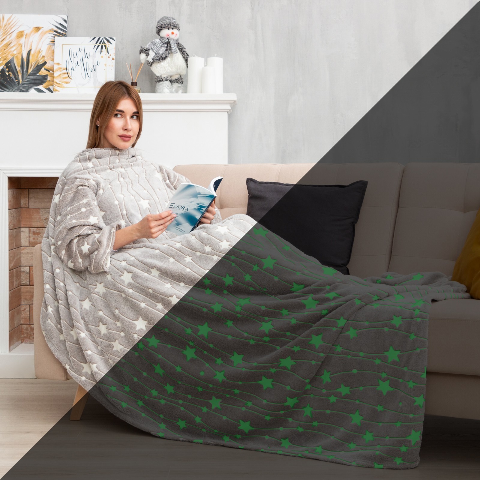 Плед с рукавами светящийся в темноте «этель. звездное небо», 150 200 см, корал-флис