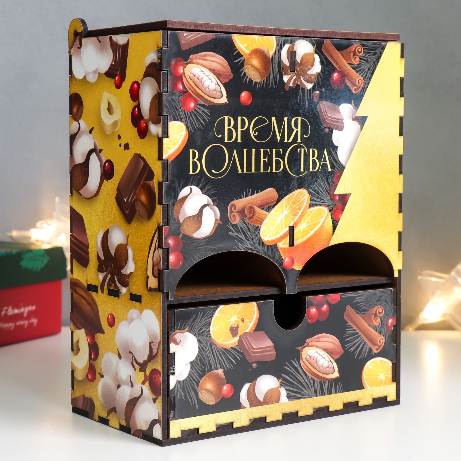 Новогодний чайный домик с ящиком "чёрное золото" 20х15х8,5 см