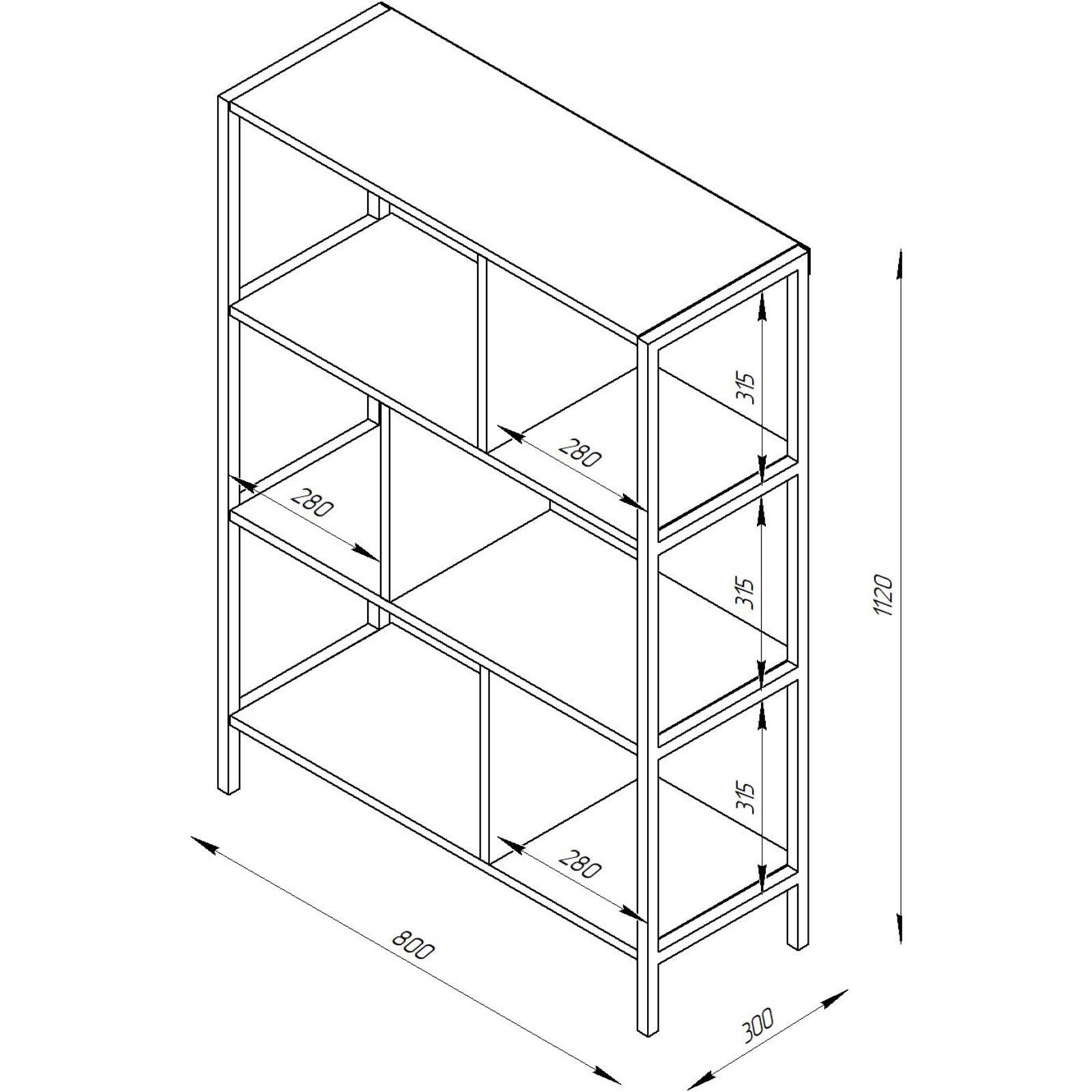 Стеллаж "лофт" 80 х 30 х 112 см