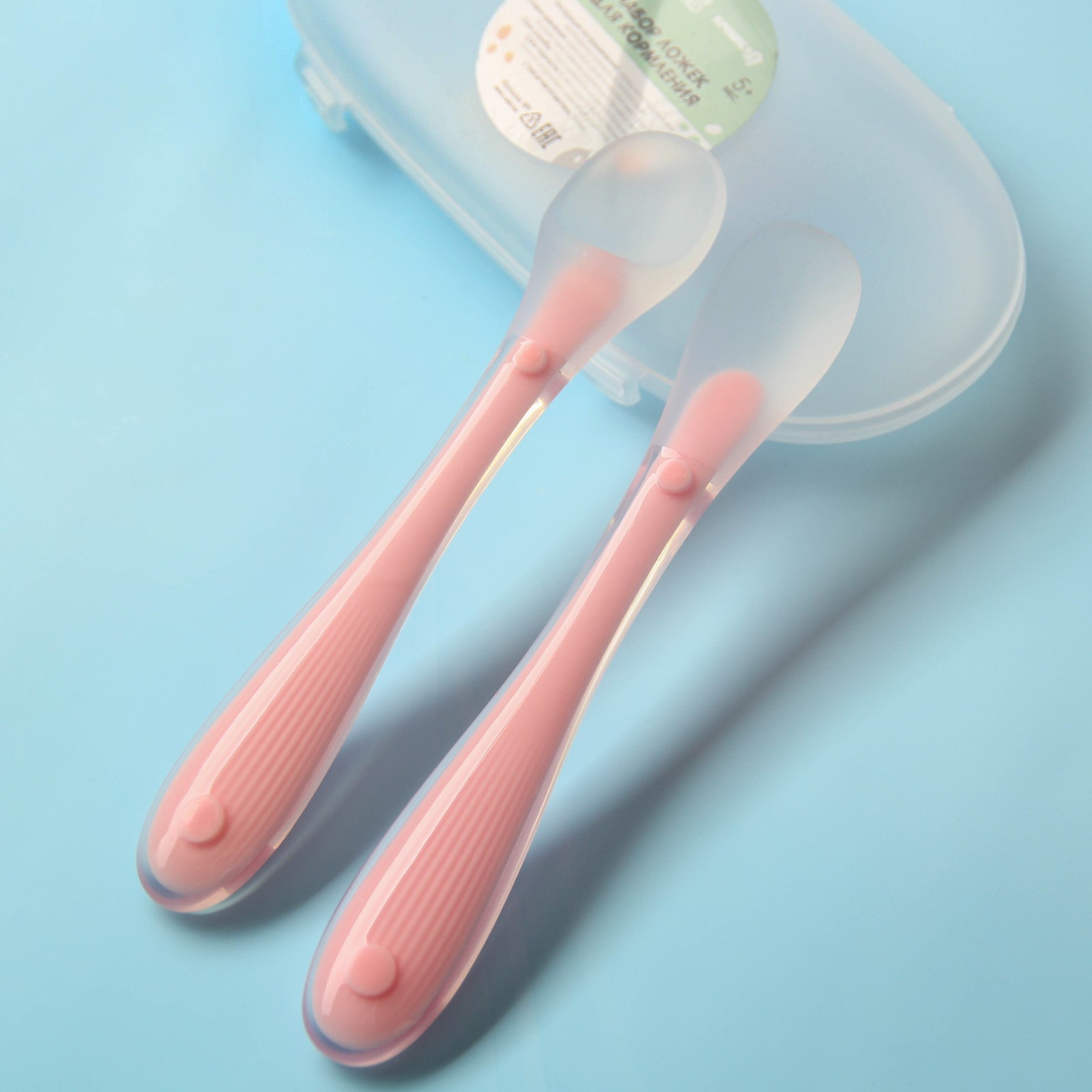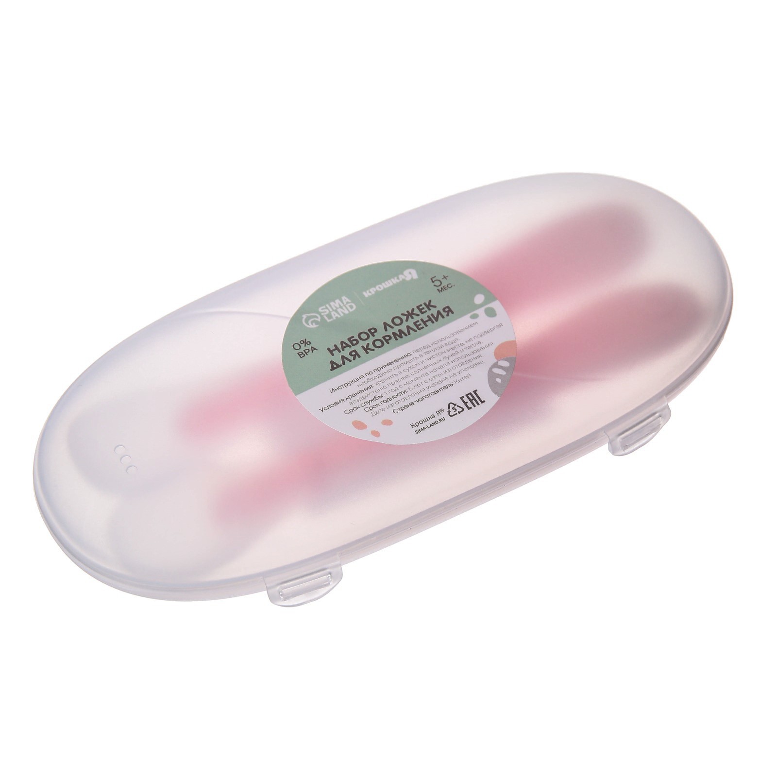 Набор силиконовых ложек для кормления, 2 шт., в контейнере, цвет розовый