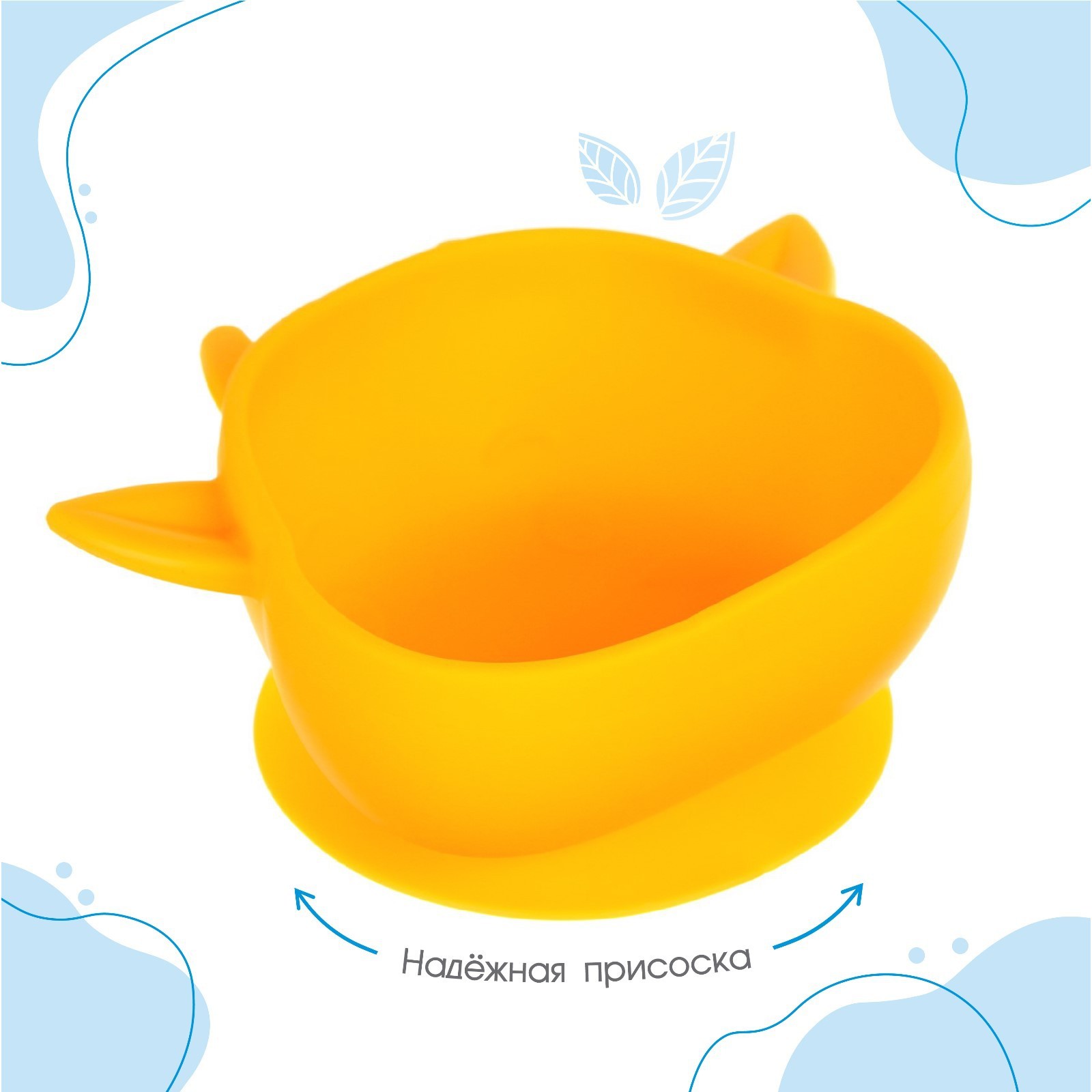 Тарелка детская на присоске, силиконовая, цвет желтый, р-р: 12х15х5,5 см