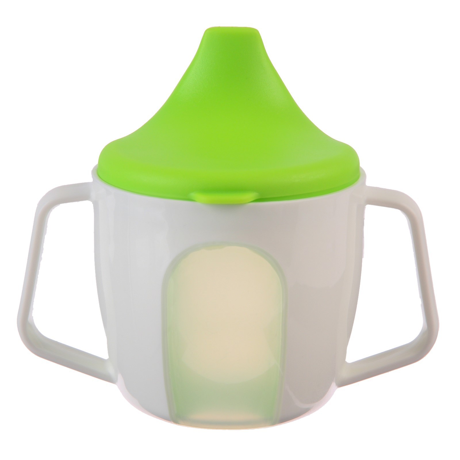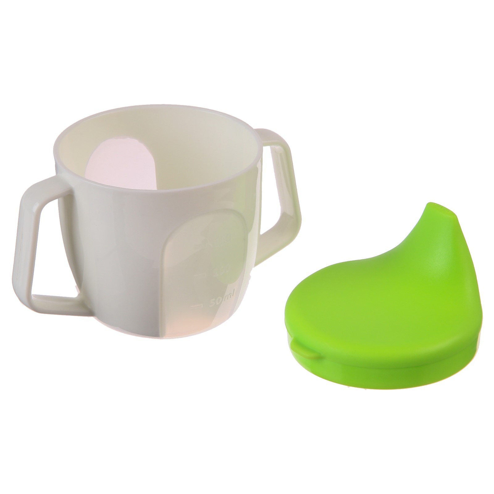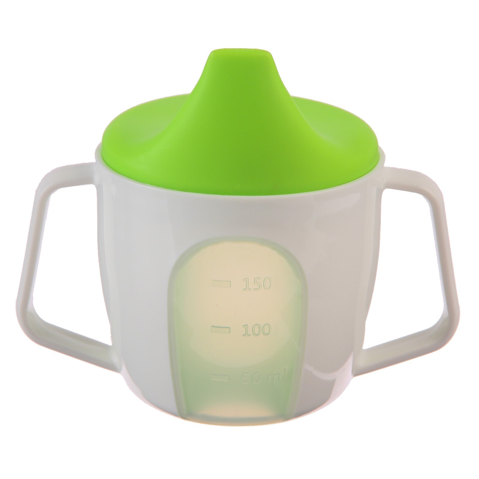 Поильник - чашечка 2 в 1 детский тренировочный, твердый носик, 150 мл., с ручками, цвет зеленый