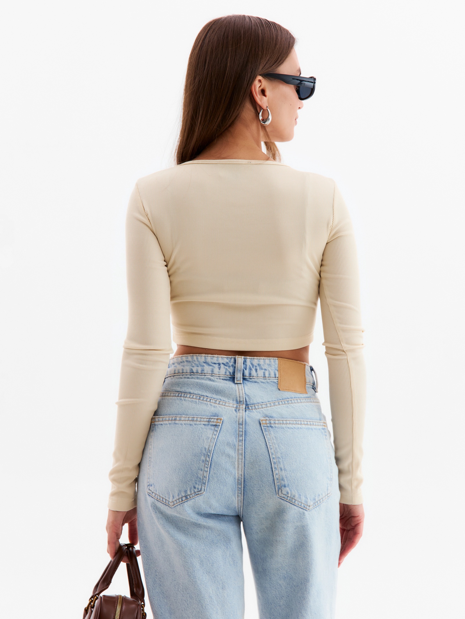 Цвет:Бежевый|Для кого:Для женщины|Назначение:Повседневная|Ткань:Лапша|Размер:44|Размер:46|Рост, см:165 - 170|Длина рукава, см:64.5|Рост модели на фото, см:170|Сезон:Лето|Вид застёжки:Без застёжки|Тематика:Однотонная|Длина рукава:Длинный|Вырез горловины:Каре|Декоративные элементы:Без элементов|Покрой:Облегающий|Рекомендации по уходу:Бережный режим глажки|Рекомендации по уходу:Стирка при 30 °С|Состав ткани:Полиэстер|Состав ткани:Эластан|Наличие капюшона:Нет|Обхват талии, см:72 - 76|Длина изделия по спинке, см:37|Обхват груди, см:88 - 92|Параметры модели на фото (ОГ-ОТ-ОБ):78-60-88|Размер одежды:40-42|Страна:Россия