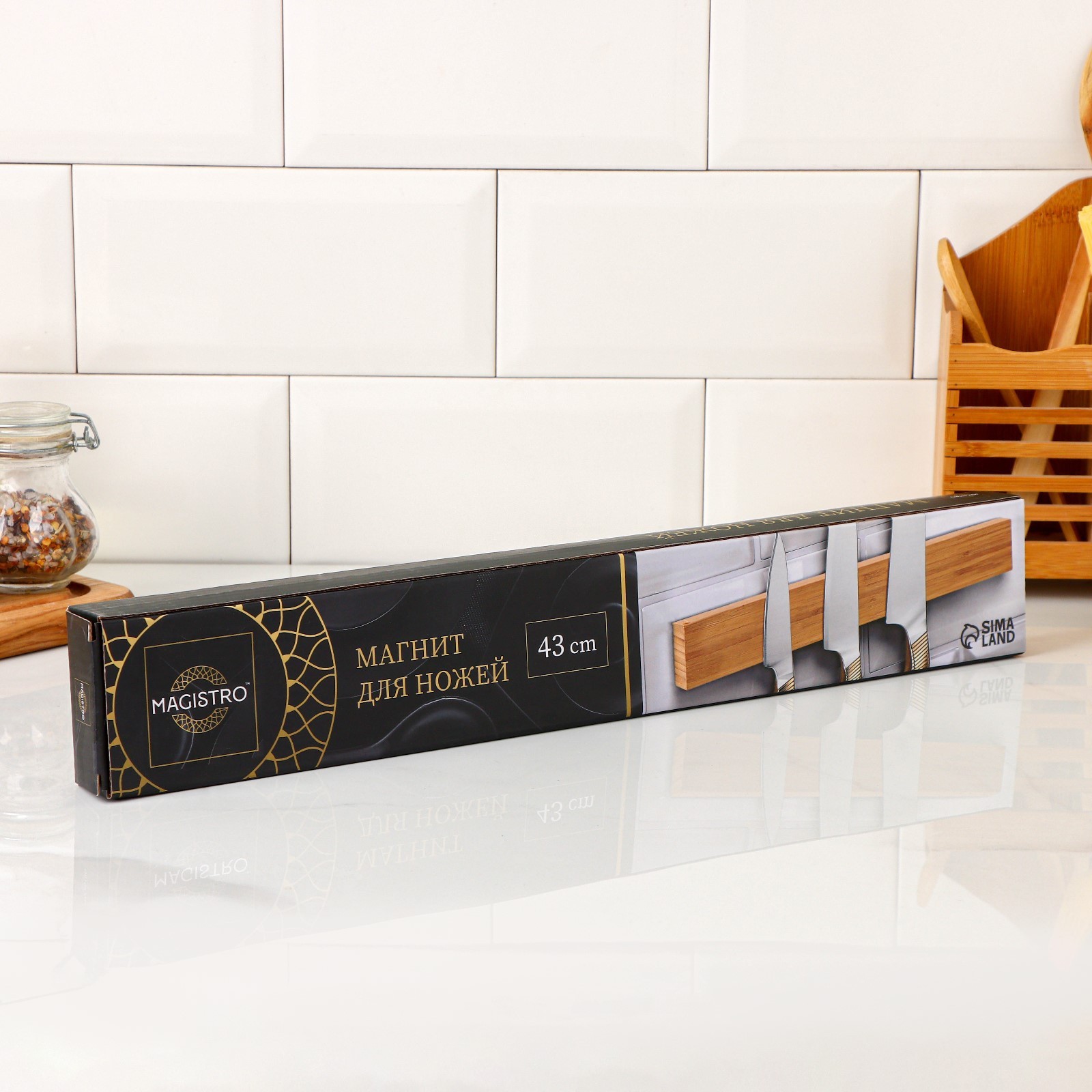 Держатель для ножей магнитный Magistro Bamboo, 43 см, бамбук