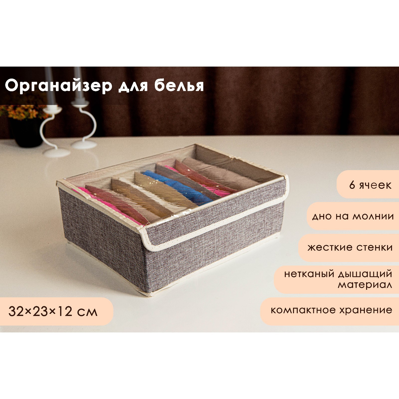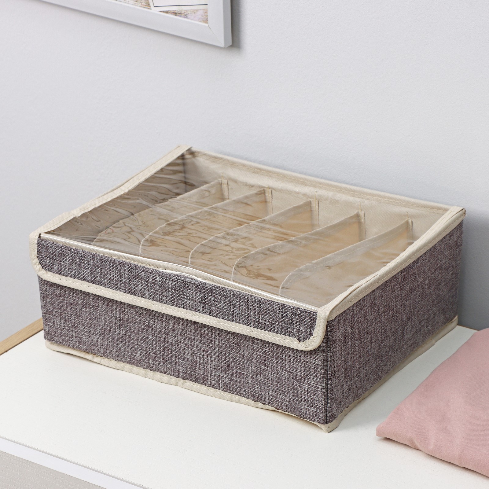 Органайзер для хранения белья с прозрачной крышкой доляна «тео», 6 ячеек, 32x23x12 см, цвет серый