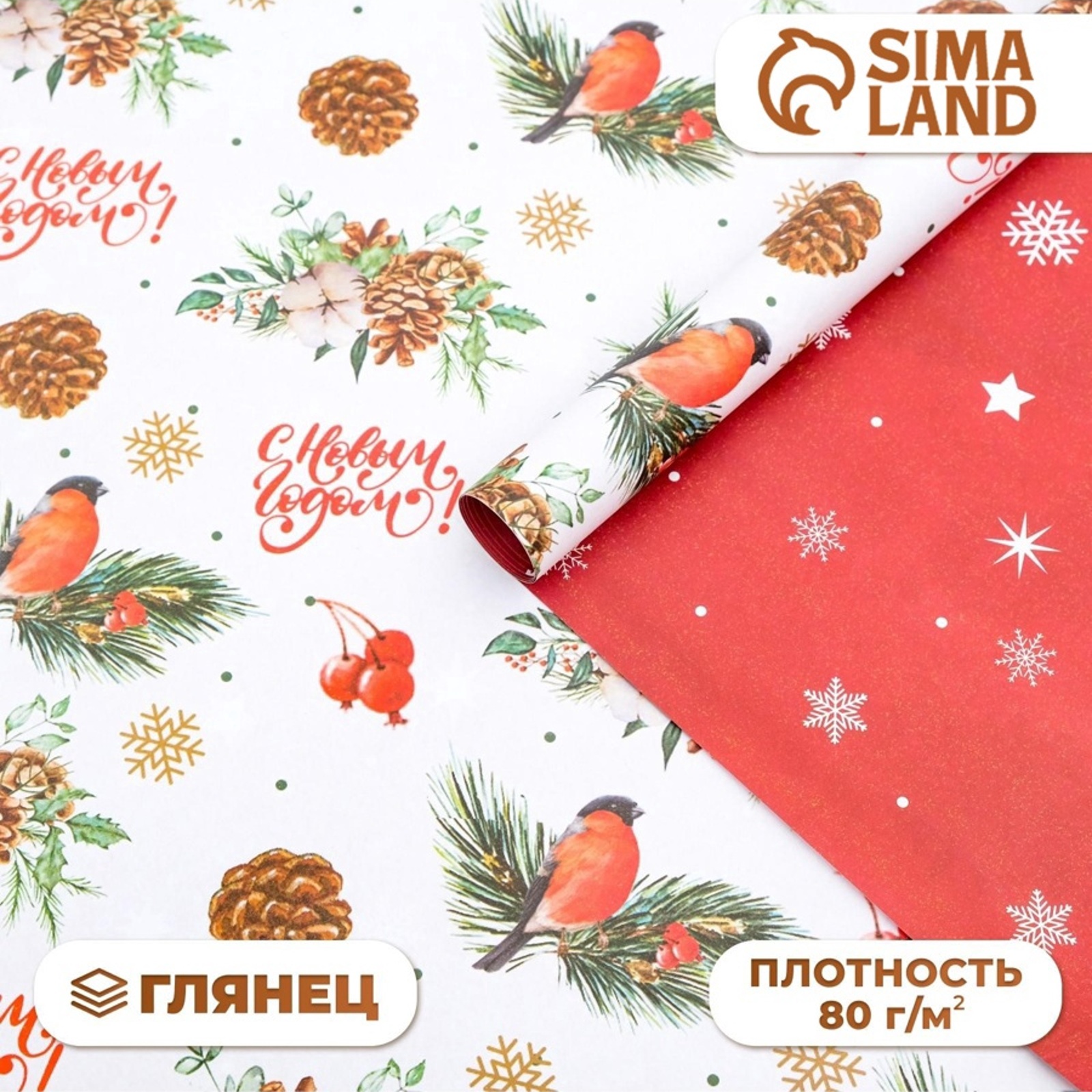 Бумага упаковочная глянцевая двусторонняя «с новым годом», 70 100 см. Оригинальный дизайн подарочной бумаги выделит ваш подарок из массы других. Подарочная упаковка - это современный и удобный способ оформления букетов, композиций. Подарочная бумага придает композиции оригинальность и индивидуальность. Упаковочная пленка для подарков защищает изделие от внешних воздействий. Бумагу можно использовать для оформления букетов, подарков, сувениров, для упаковки конфет и сладостей на Новый год, День Рождения и другие праздники. Размер, м:0.7 х 1|Цвет:Красный|Цвет:Белый|Цвет:Разноцветный|Плотность, г/м :70|Тематика:Новогодняя|Символ года:Нет|Тематика праздника:Новый год|Материал:Бумага|Вид:В листах|Тип листа:Двусторонний|Страна:Россия  развернуть описание ▼