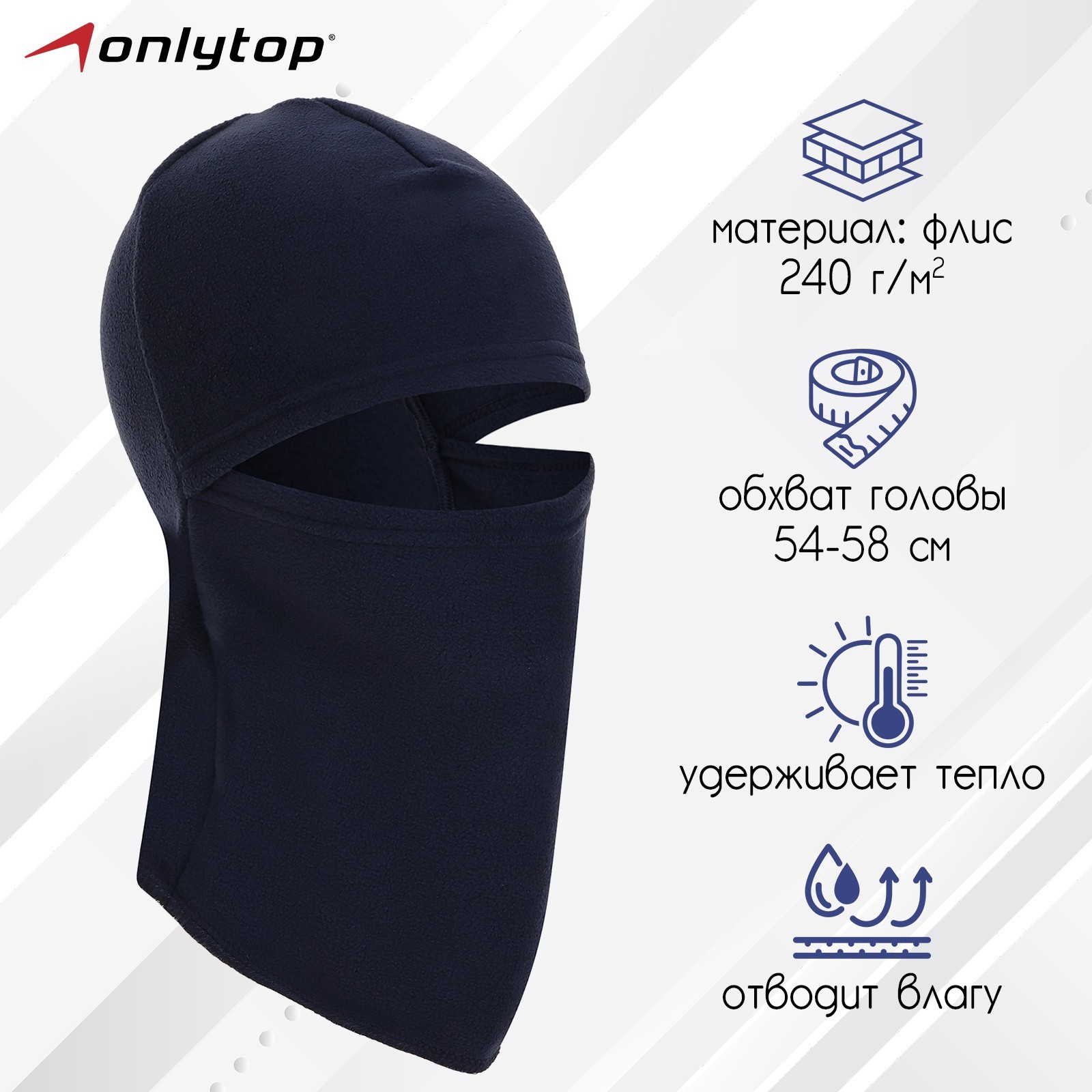 Балаклава ветрозащитная Onlytop, р. M, обхват 54-58 см, цвет синий