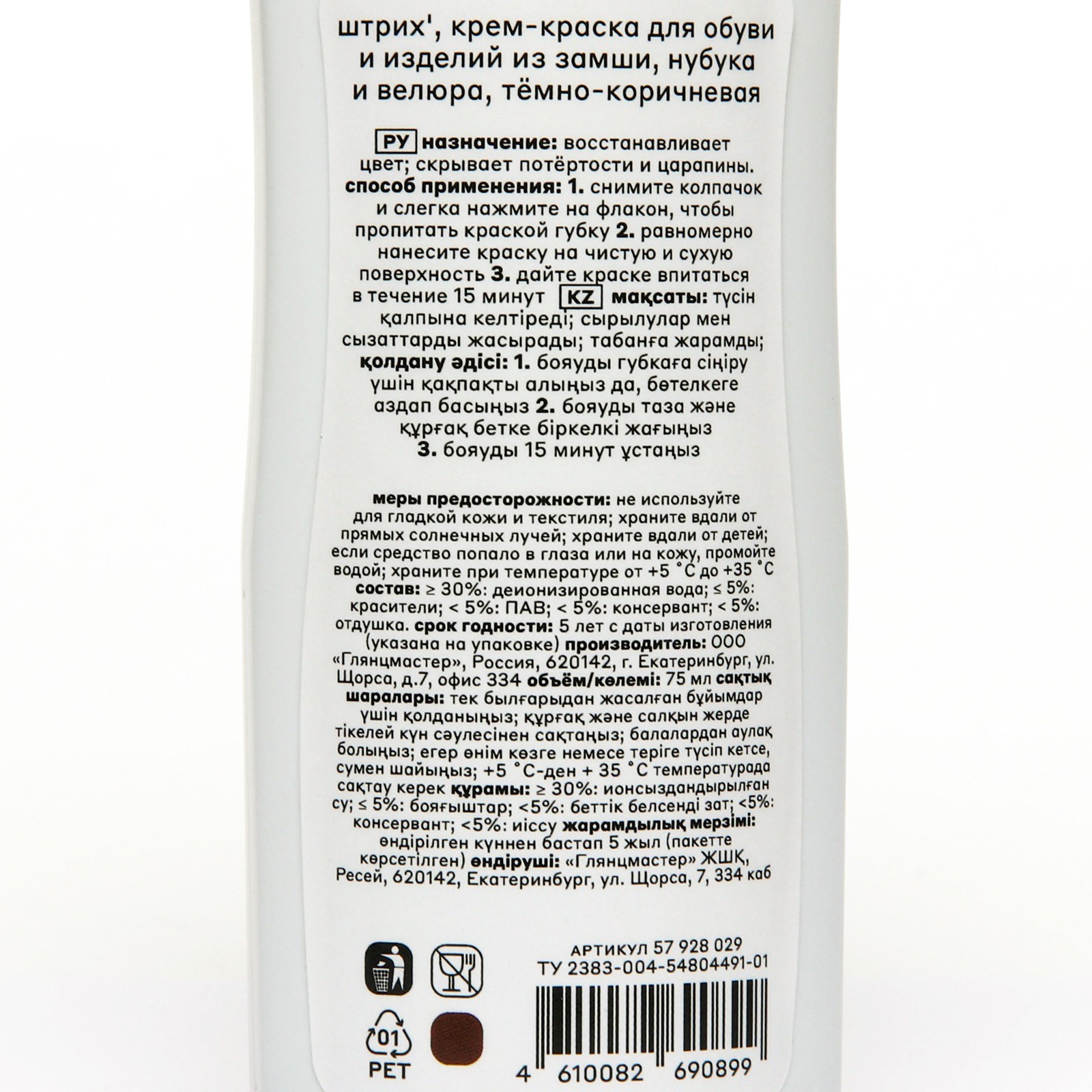 Крем-краска для обуви и изделий из замши, нубука и велюра штрих, темно-коричневая 75 мл