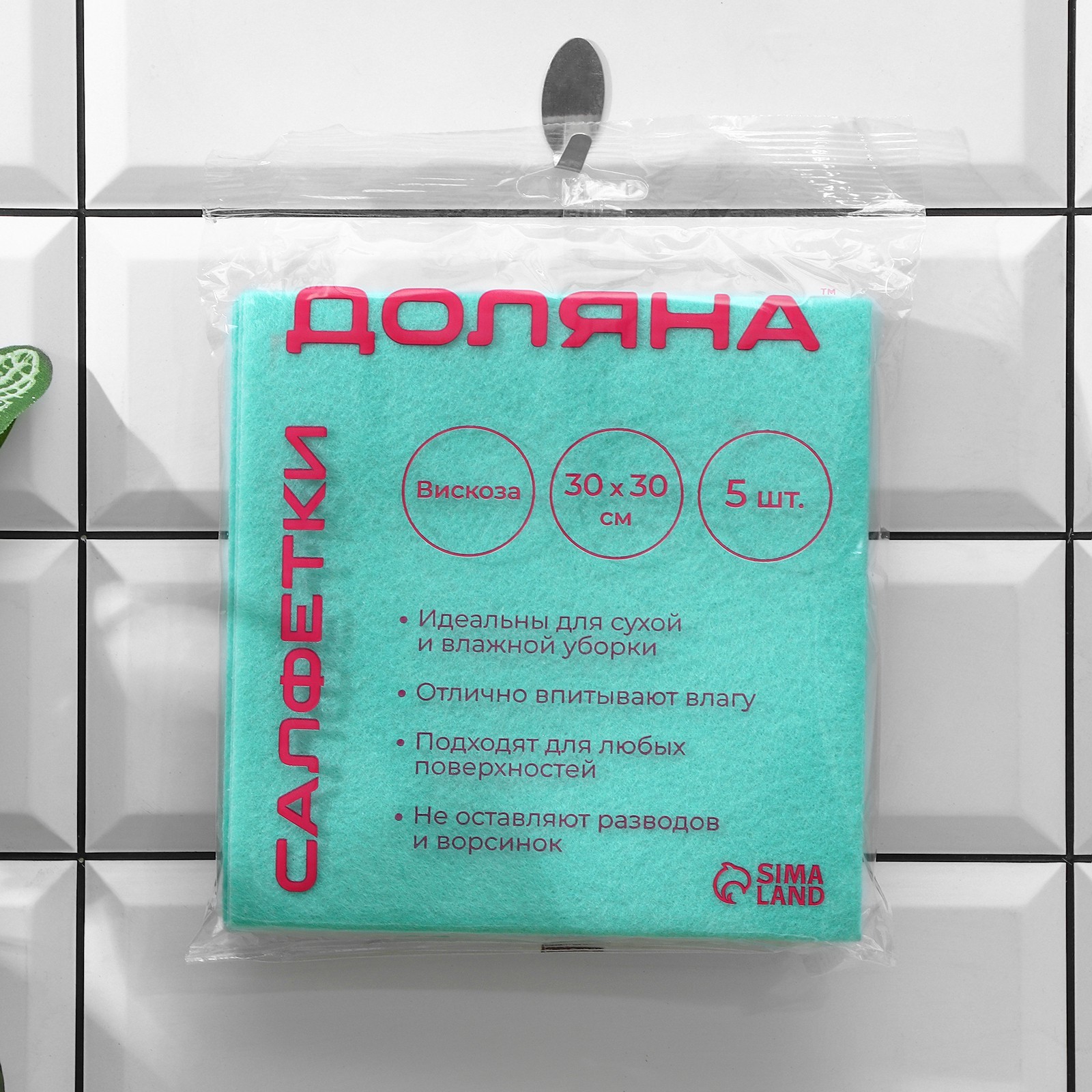 Салфетки вискозные универсальные доляна, тряпки для уборки, 5 шт, 30x30 см, цвет зелёный