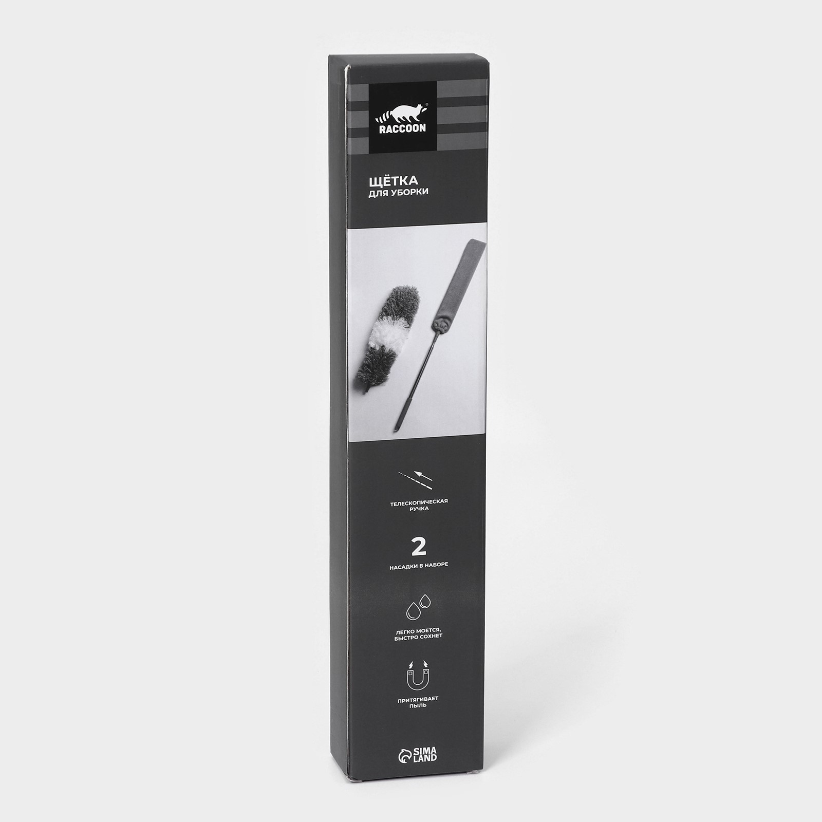 Щётка для удаления пыли Raccoon, плоская насадка 40x7,5 см, пушистая насадка 41x13 см, телескопическая ручка 210 см
