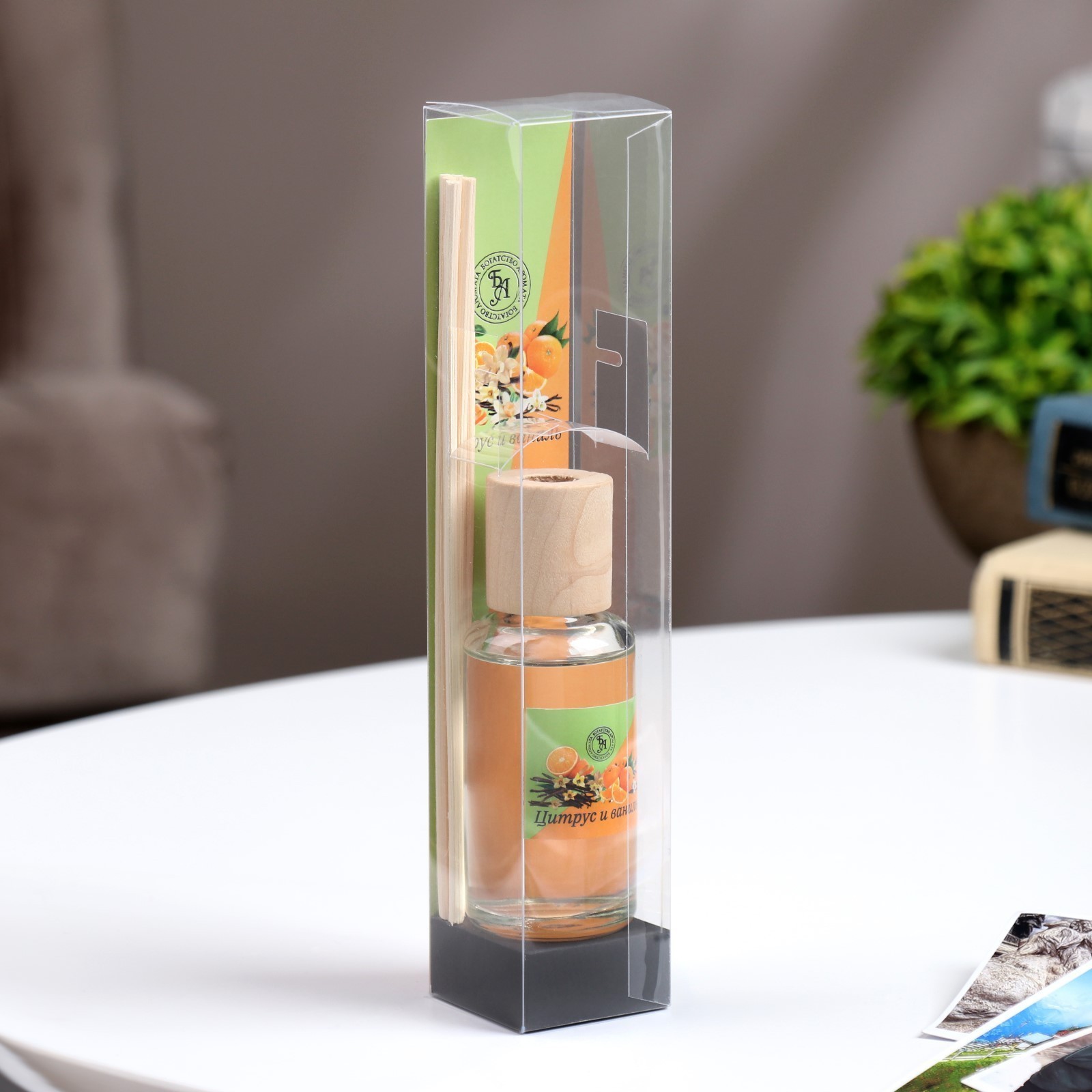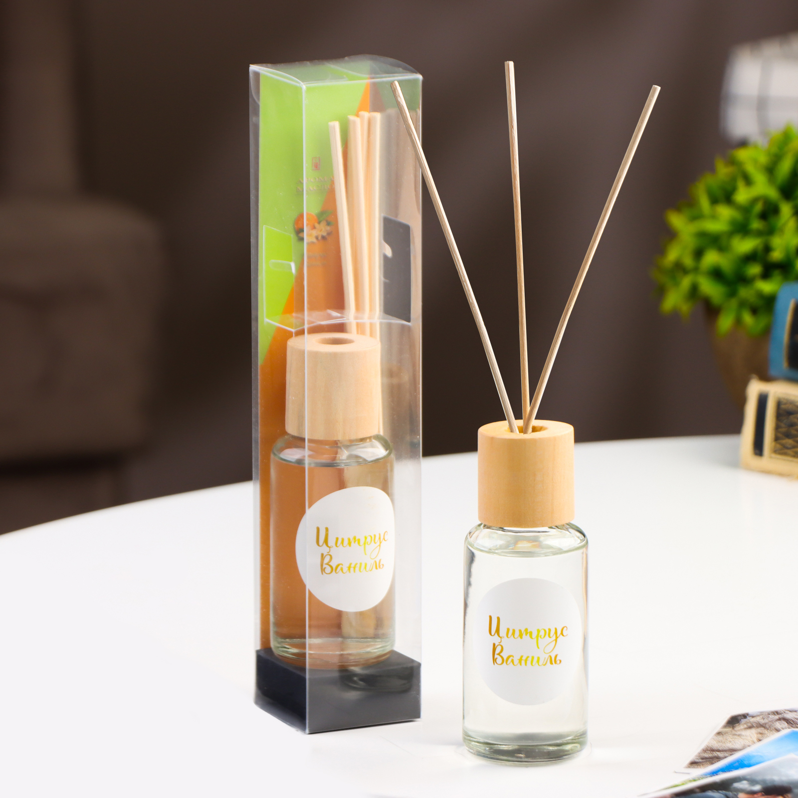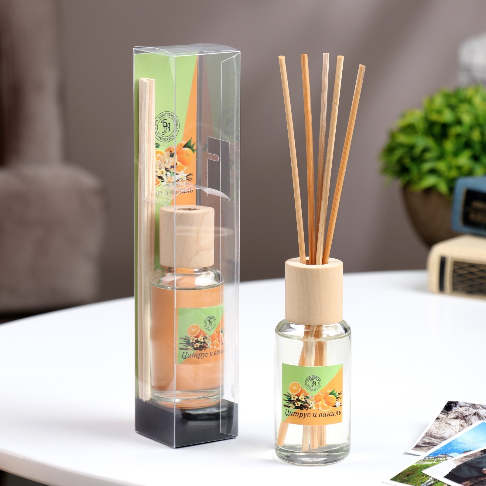 Диффузор ароматический "модерн", 50 мл, цитрус и ваниль, "богатство аромата". Диффузор — это безопасный, экологически чистый и натуральный способ ароматизации помещения, является прекрасной альтернативой ароматизированным спреям. Чтобы аромат оставался насыщенным, 1–2 раза в день доставайте палочки и переворачивайте их, вставляя другим концом в стеклянную колбу. Интенсивность аромата зависит от влажности воздуха (в более влажном помещении летучесть аромата сильнее), проветриваемости помещения и количества палочек. Обратите внимание. У диффузора имеется две обичайки, которые легко снимаются. В зависимости от праздника вы можете выбрать какую из них оставить. Цвет: Бежевый Объём, мл: 50 Вид ароматизатора: Диффузор Аромат: Мандарин Аромат: Ваниль  развернуть описание ▼