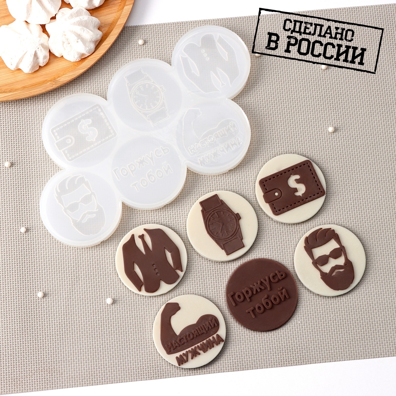 Силиконовый молд для леденцов и шоколада «мужской набор», 22x11 см, ячейка D=6 см, цвет прозрачный