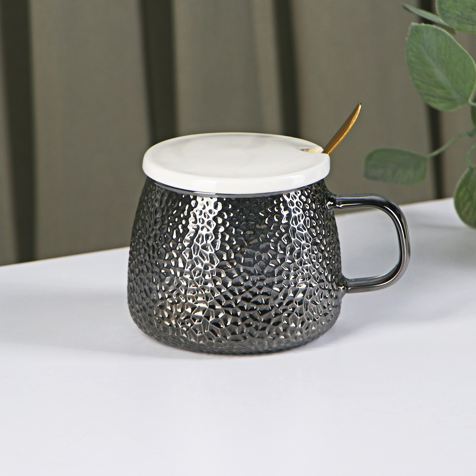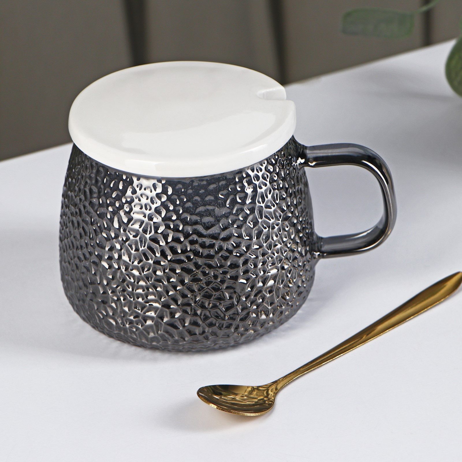 Кружка стеклянная с ложкой Magistro «диамант», 450 мл, цвет серый