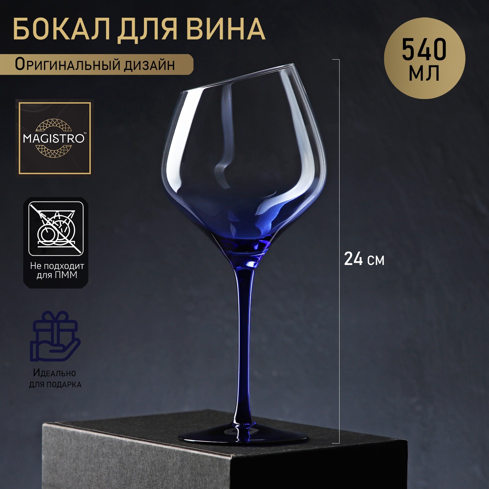 Бокал стеклянный для вина Magistro «иллюзия», 540 мл, 10x24 см, цвет ножки синий