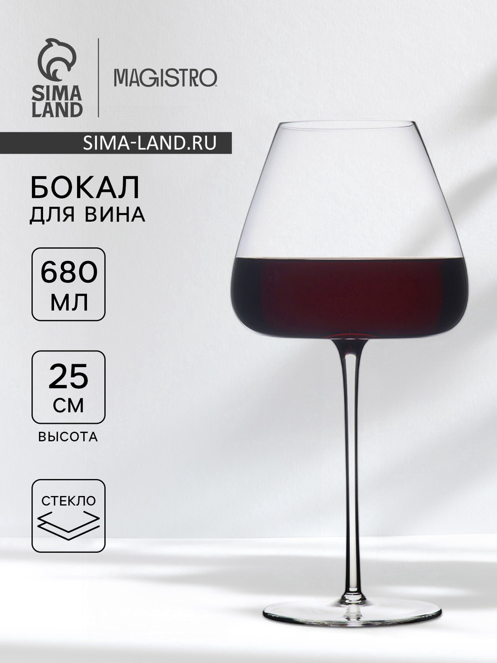 Бокал для вина magistro «амьен», 680 мл, h=25 см, стекло, прозрачный. Бокал для вина «Амьен» на длинной изящной ножке изготовлен из качественного стекла. Большая по объему форма бокала дает вину необходимое пространство, позволяя ему максимально раскрыть свои нотки и вкус. Чаша заметно расширяется, а затем сужается кверху, позволяя раскрыть самые тонкие оттенки. Можно мыть в посудомоечной машине. Набор:Нет|Цвет:Прозрачный|Объём, мл:680|Тематика:Однотонная|Рисунок:Нет|Назначение:Для вина|Материал:Стекло|Можно мыть в посудомоечной машине:Да|Текстура:Гладкая|Особенности:Без особенностей|Страна:Китай  развернуть описание ▼