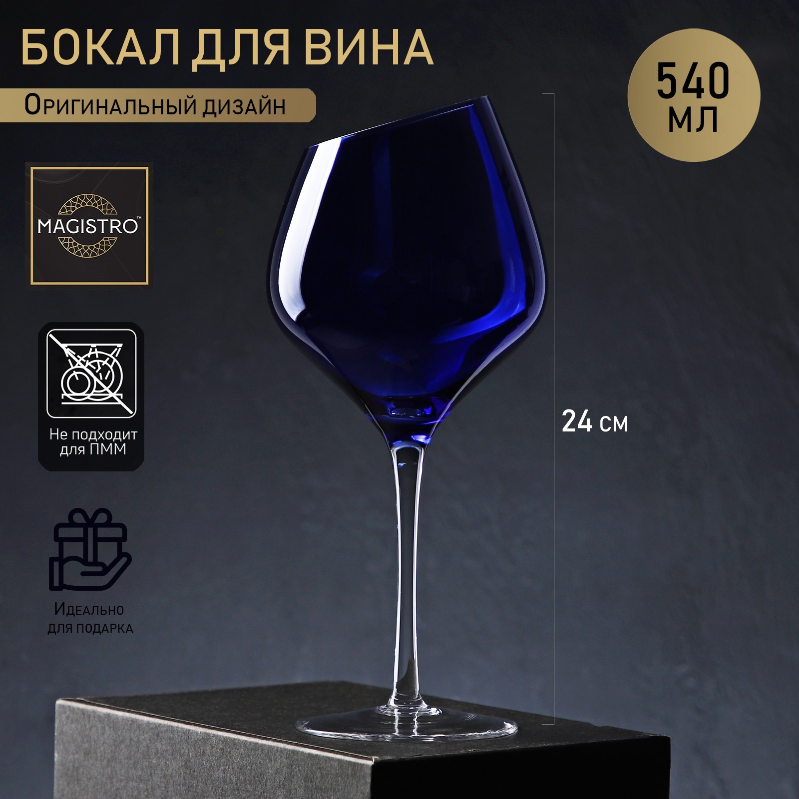 Бокал стеклянный для вина Magistro «иллюзия», 540 мл, 10x24 см, ножка прозрачная, цвет синий