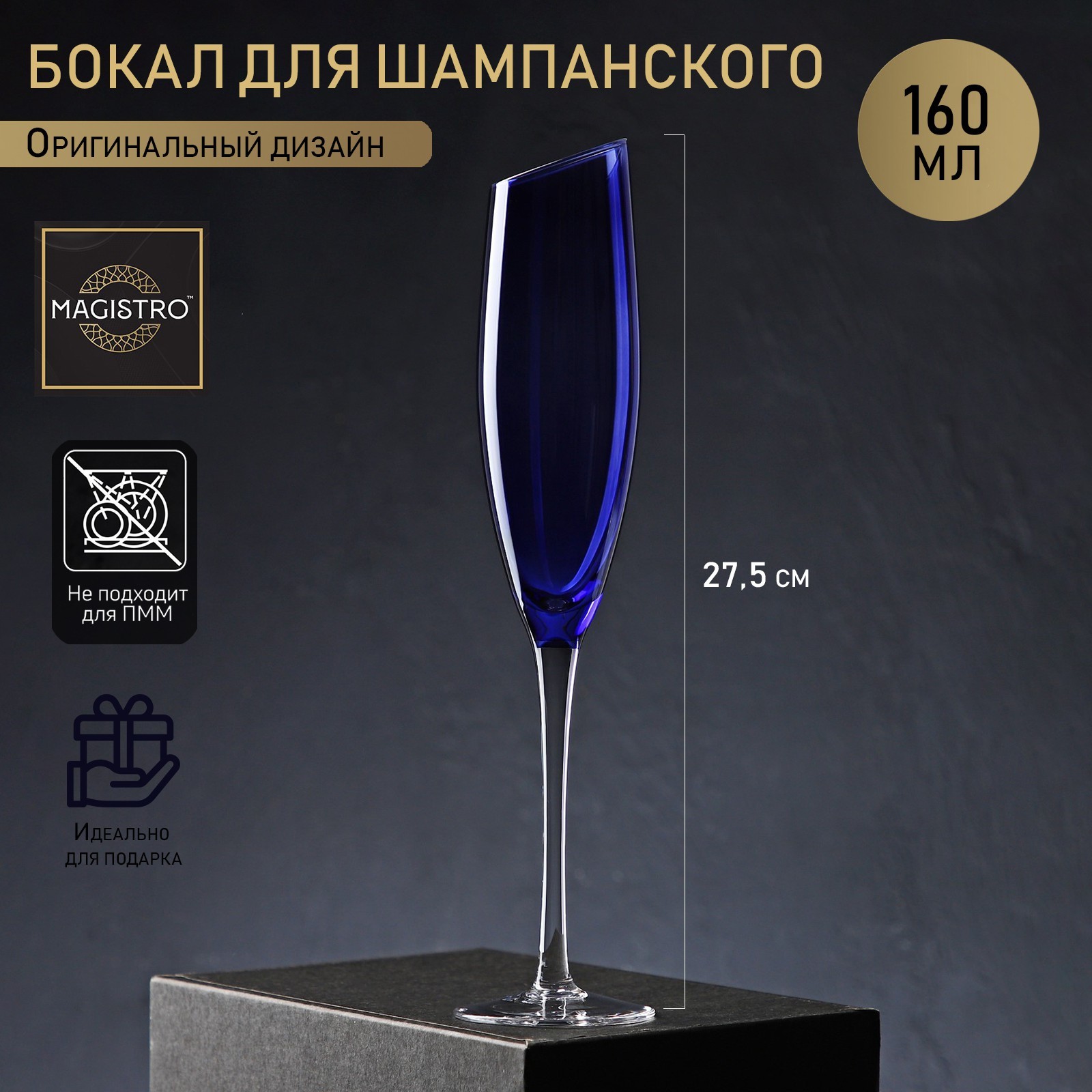 Бокал стеклянный для шампанского magistro «иллюзия», 160 мл, 5,5x27,5 см, верх синий.