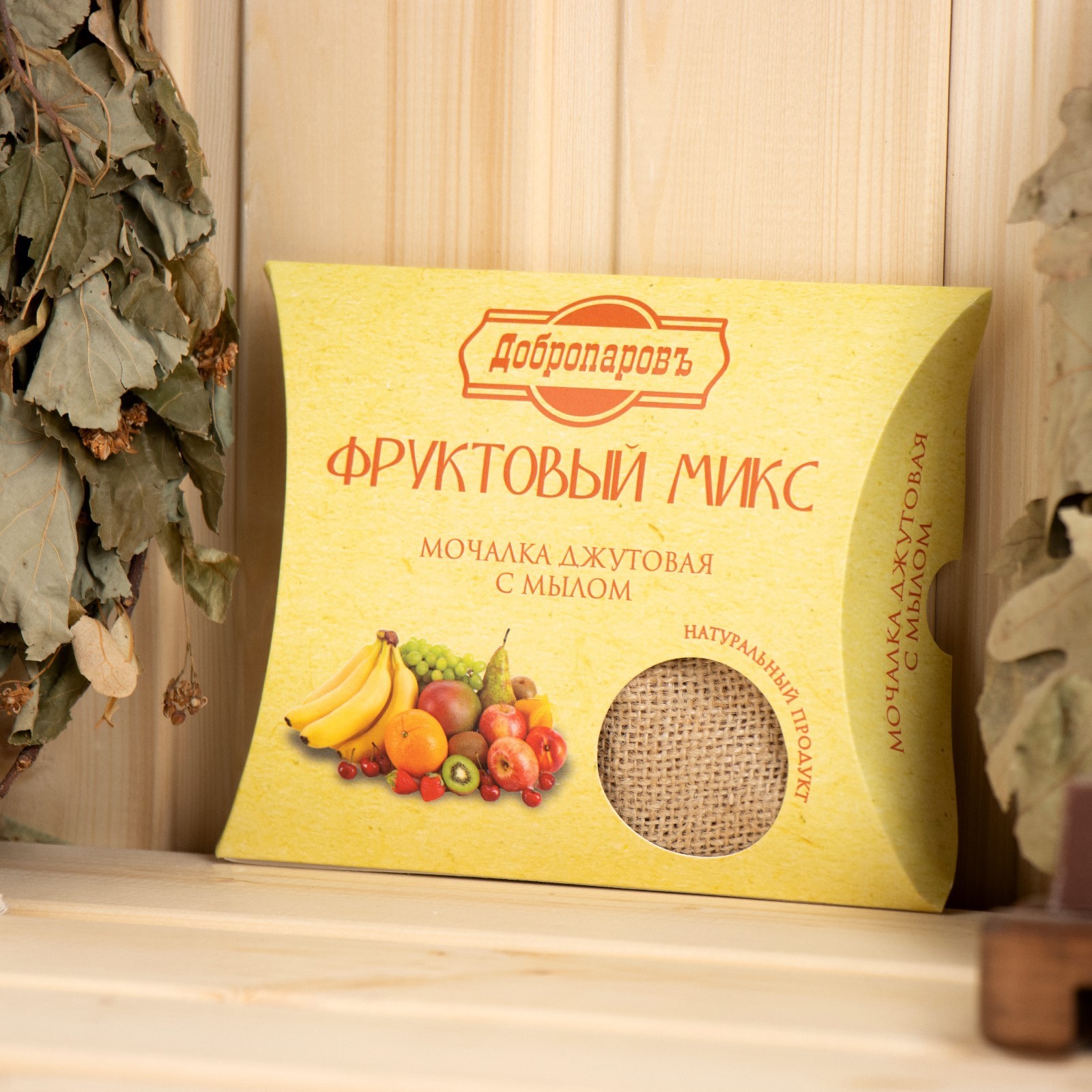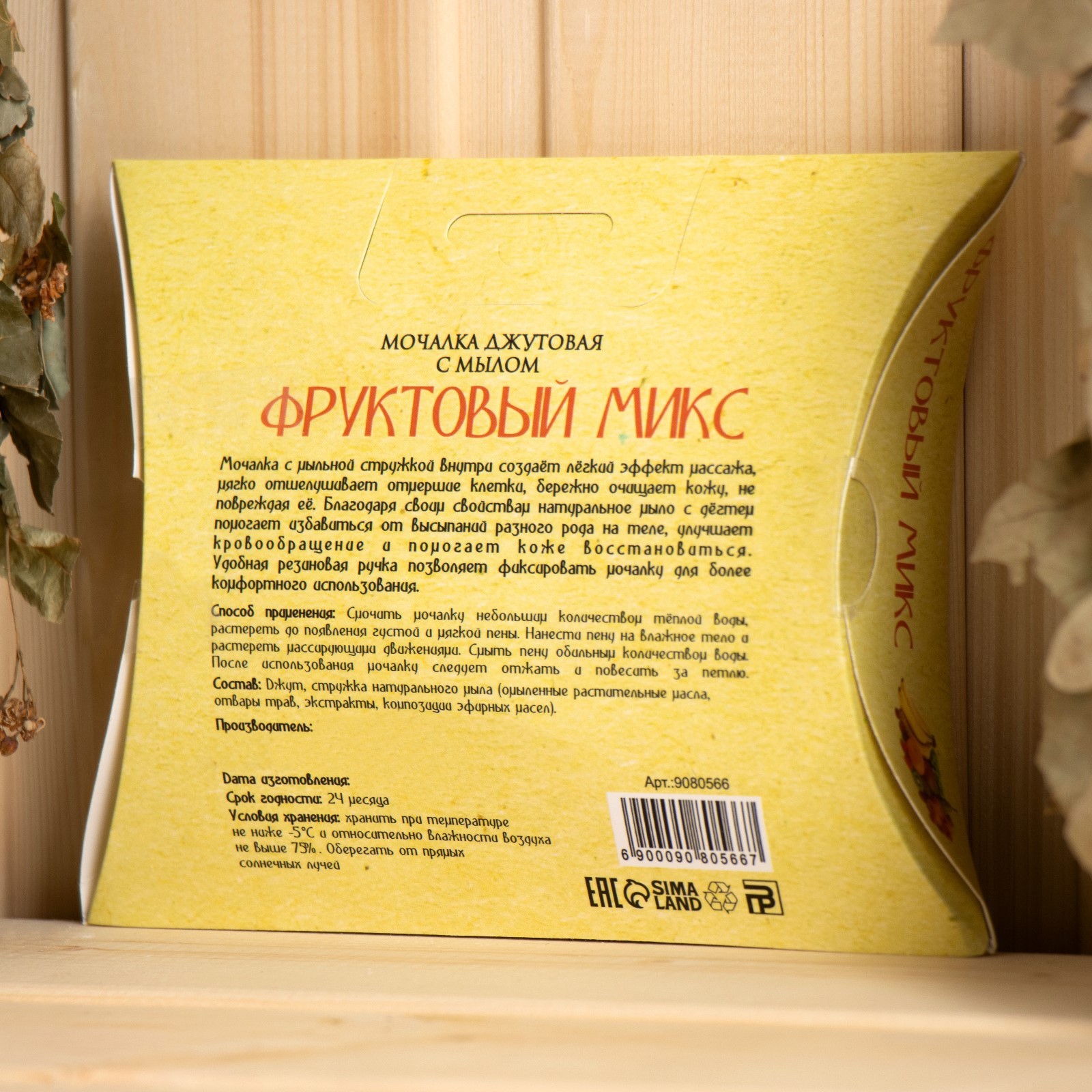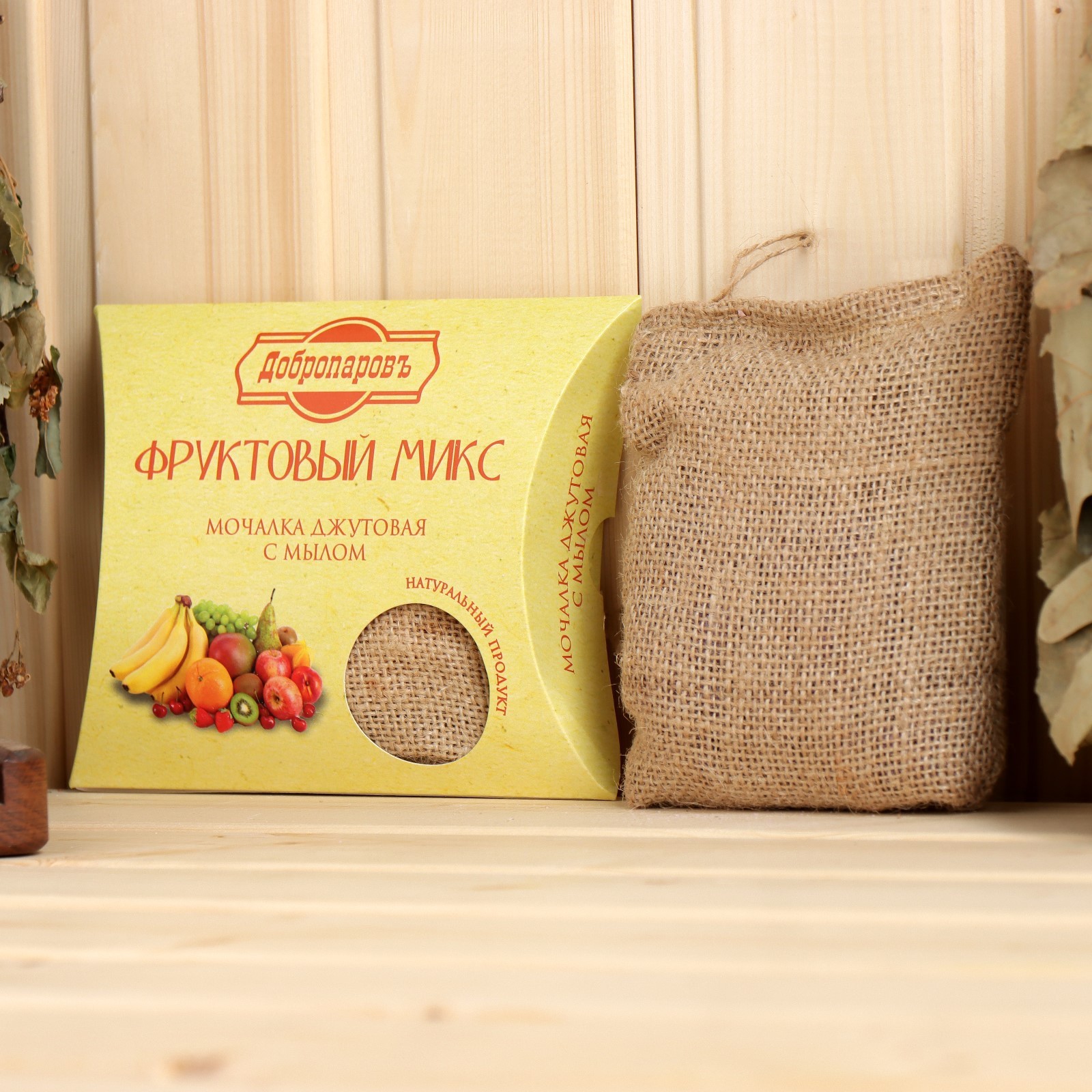 Мочалка джутовая с мылом "фруктовый микc" 110 г