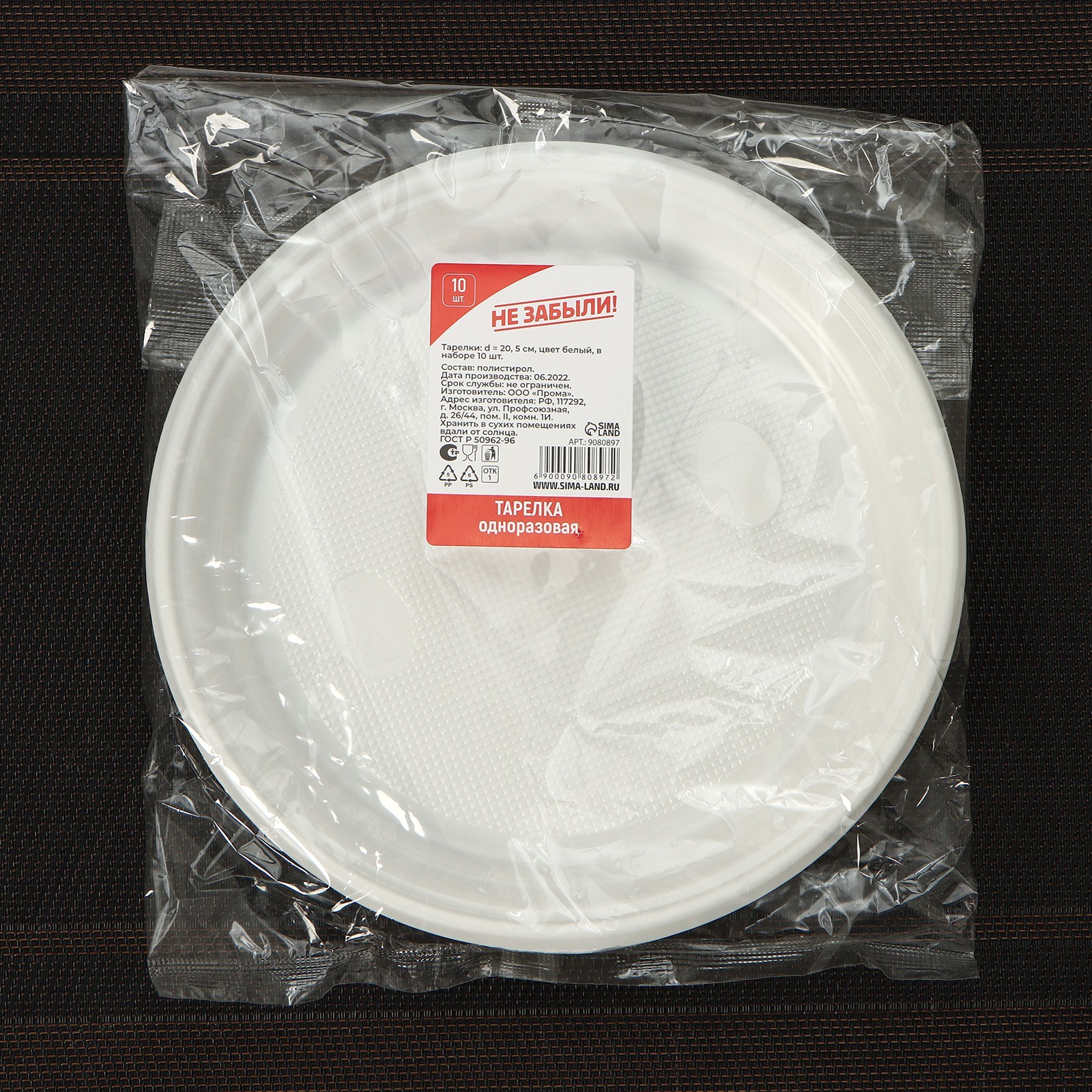 Набор пласиковых одноразовых тарелок, D=20,5 см, цвет белый, в наборе 10 шт