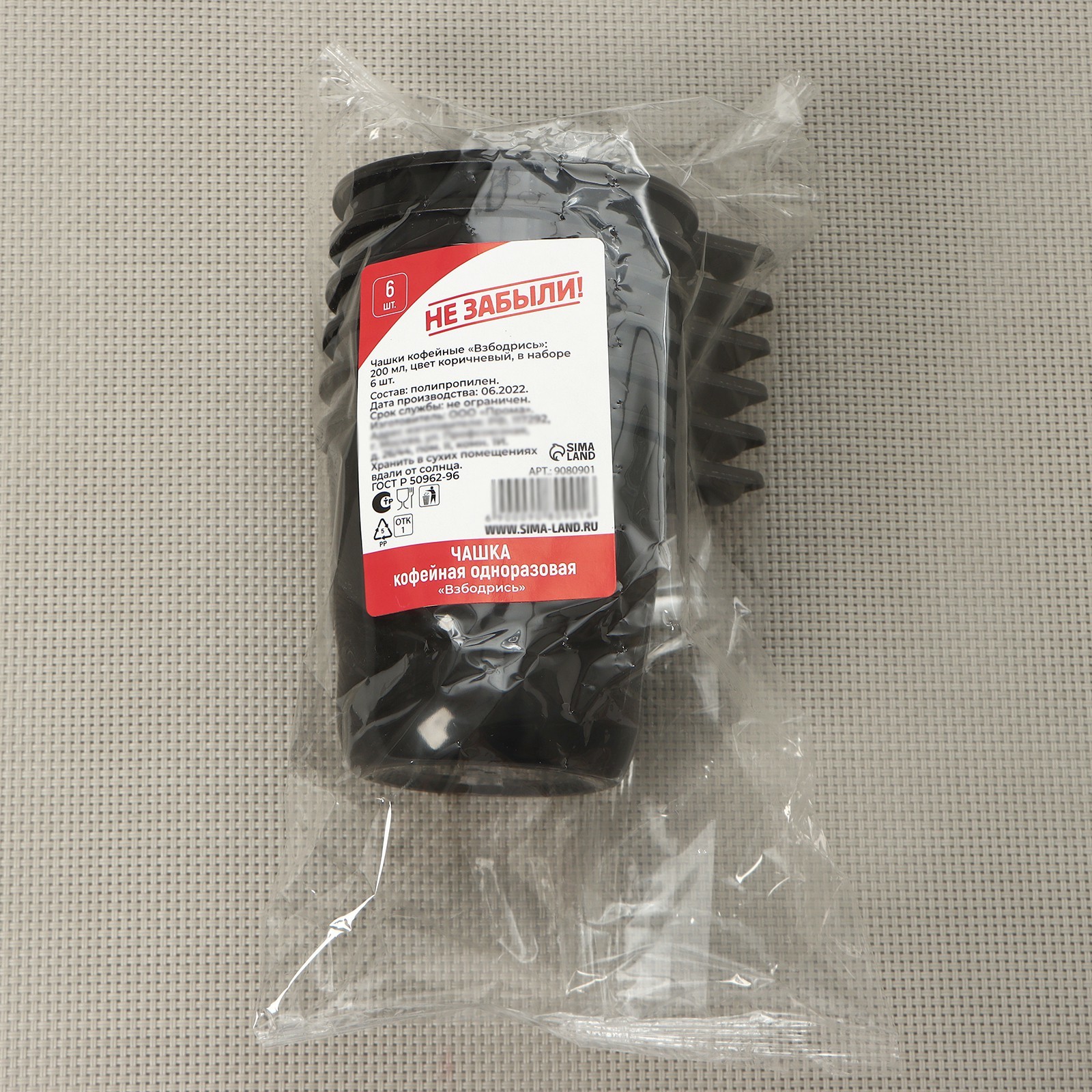 Чашки кофейные пластиковые одноразовые не забыли! «взбодрись», 200 мл, в наборе 6 шт, цвет коричневый с белым, чёрный