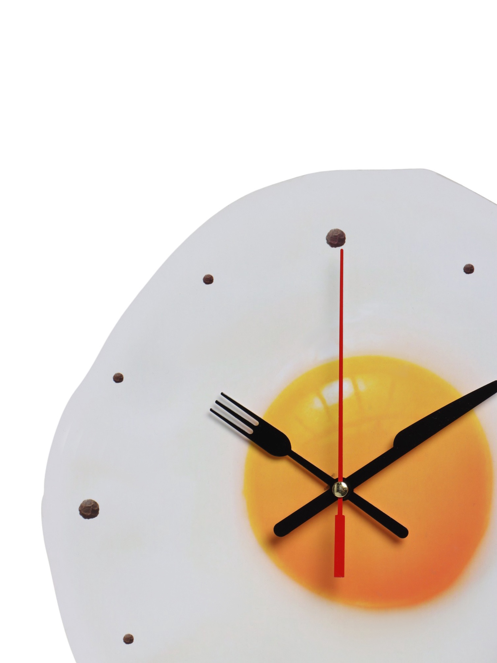 Часы настенные кухонные глазунья, плавный ход, d=24 см. Особенности Корпус часов выполнен из МДФ.Механизм: кварцевый.Форма:Фигурная|Ширина, см:24|Высота, см:24|Тематика:Еда|Тематика:Кухня|Тип индикации:Отметки|Тип механизма:Кварцевый|Материал:МДФ|Ход стрелок:Плавный|Бесшумные:Да|Страна:Россия  развернуть описание ▼