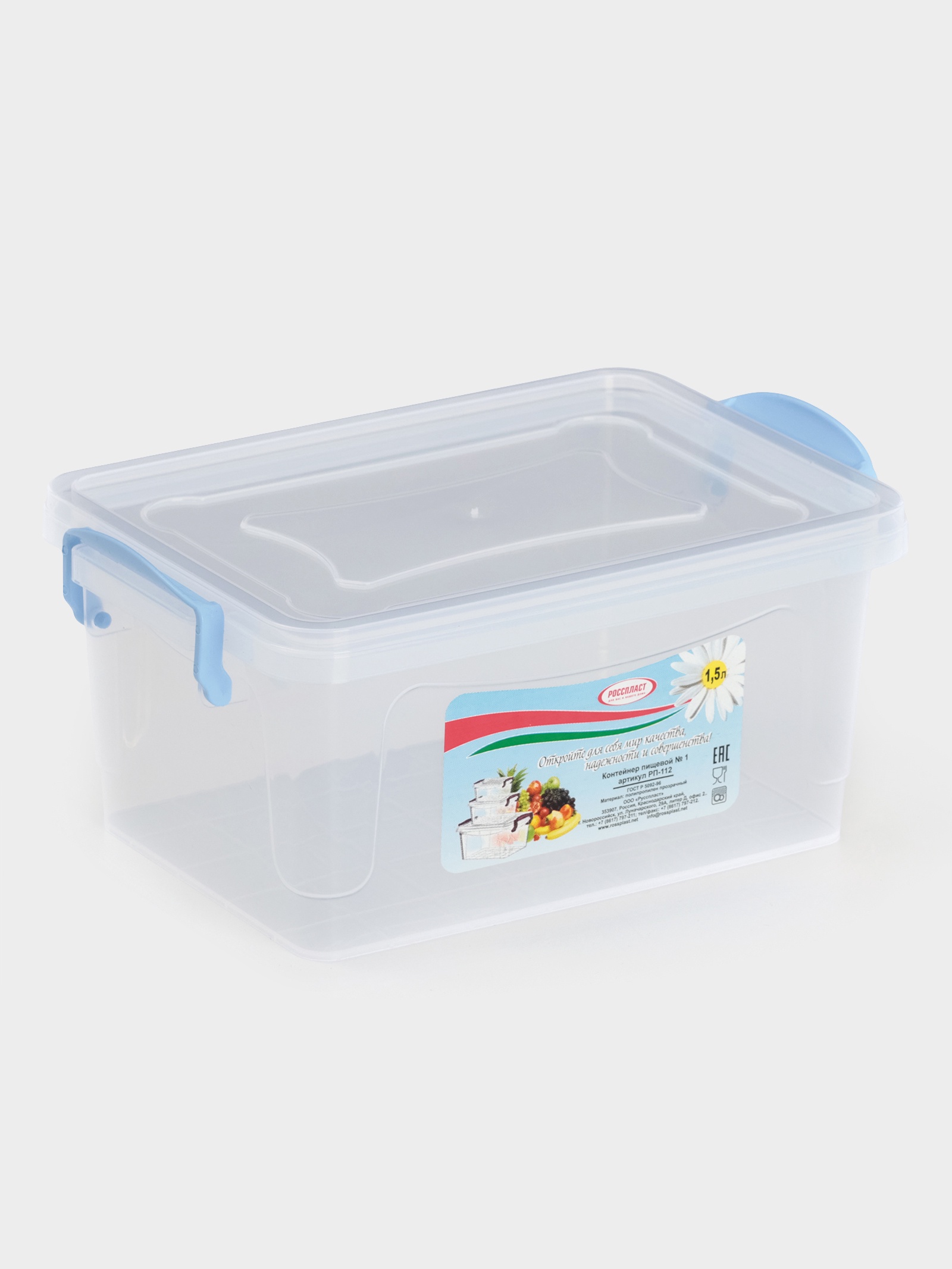 Контейнер пищевой, 1.5 л, 21x14x10 см, прямоугольный, прозрачный, ручки микс