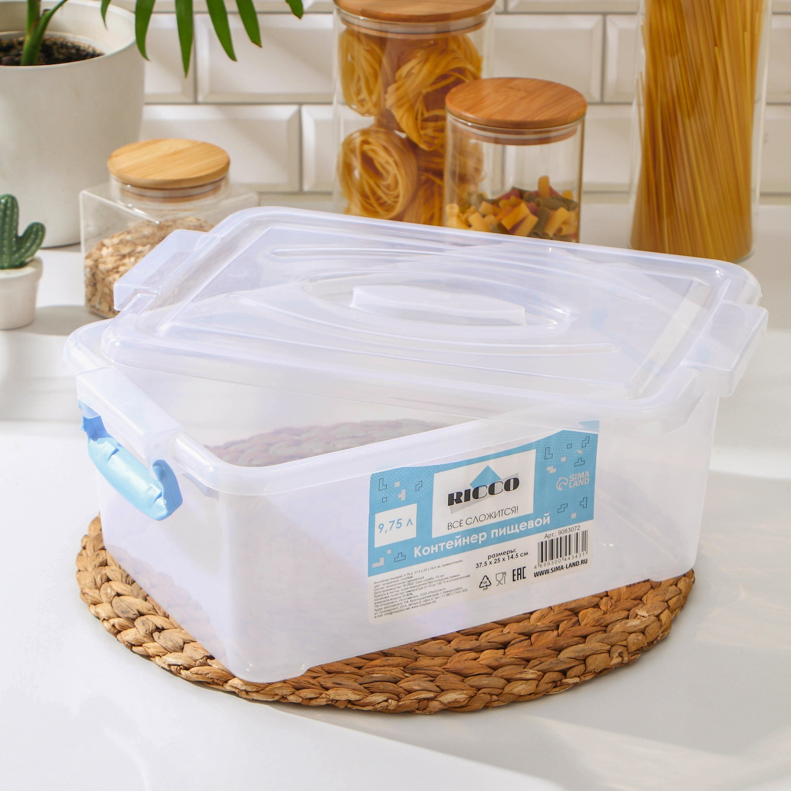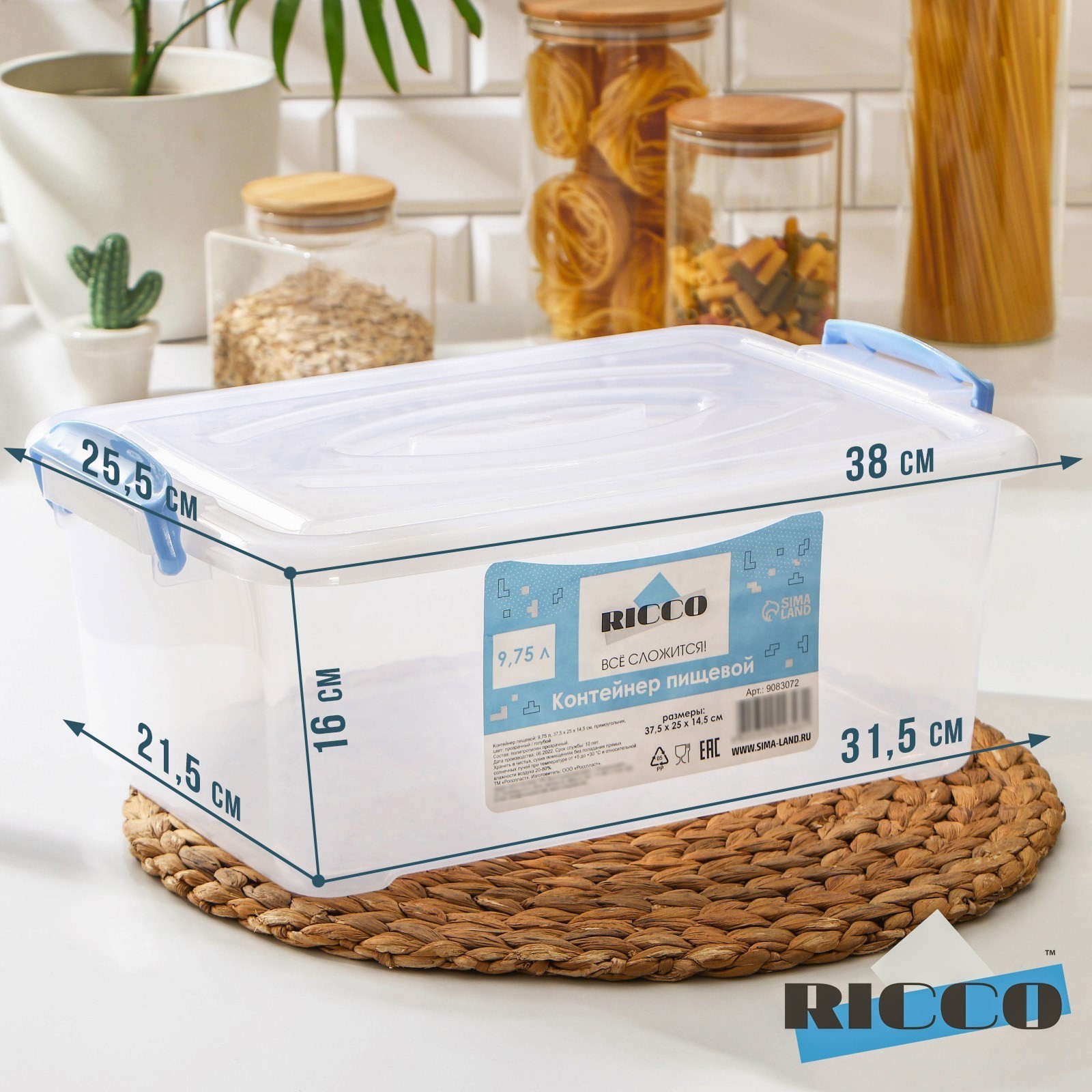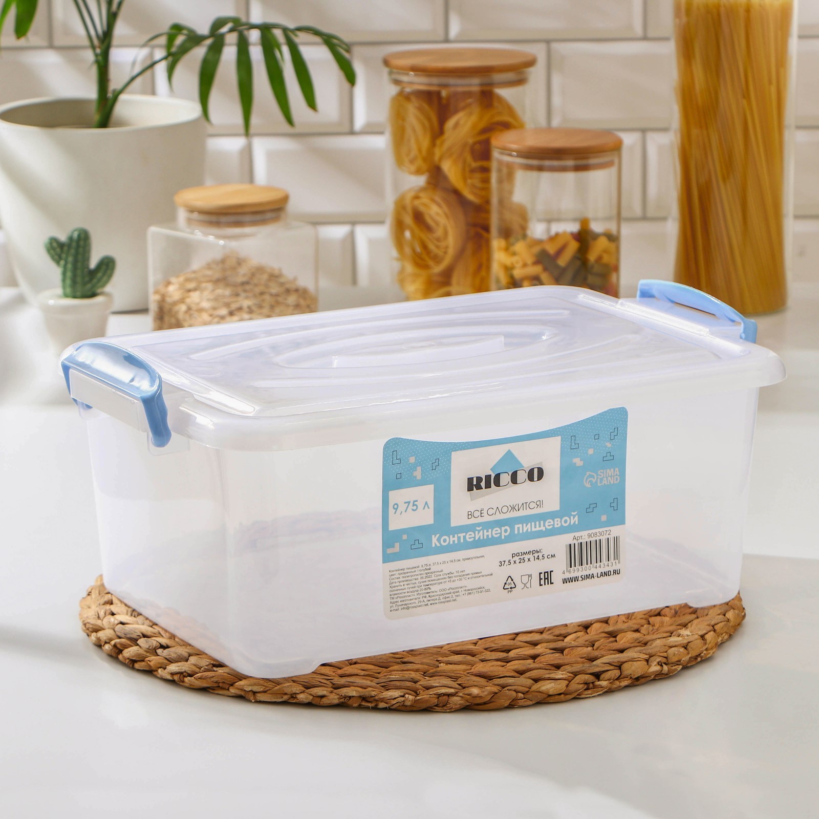 Контейнер пищевой Ricco, 9,75 л, 37,5x25x14 см, прямоугольный, цвет прозрачный, голубой
