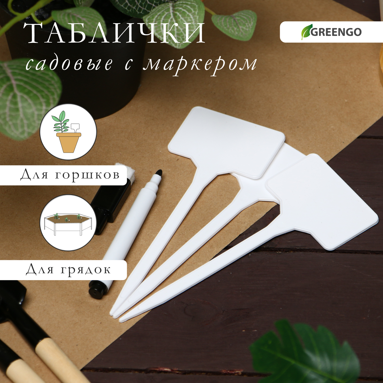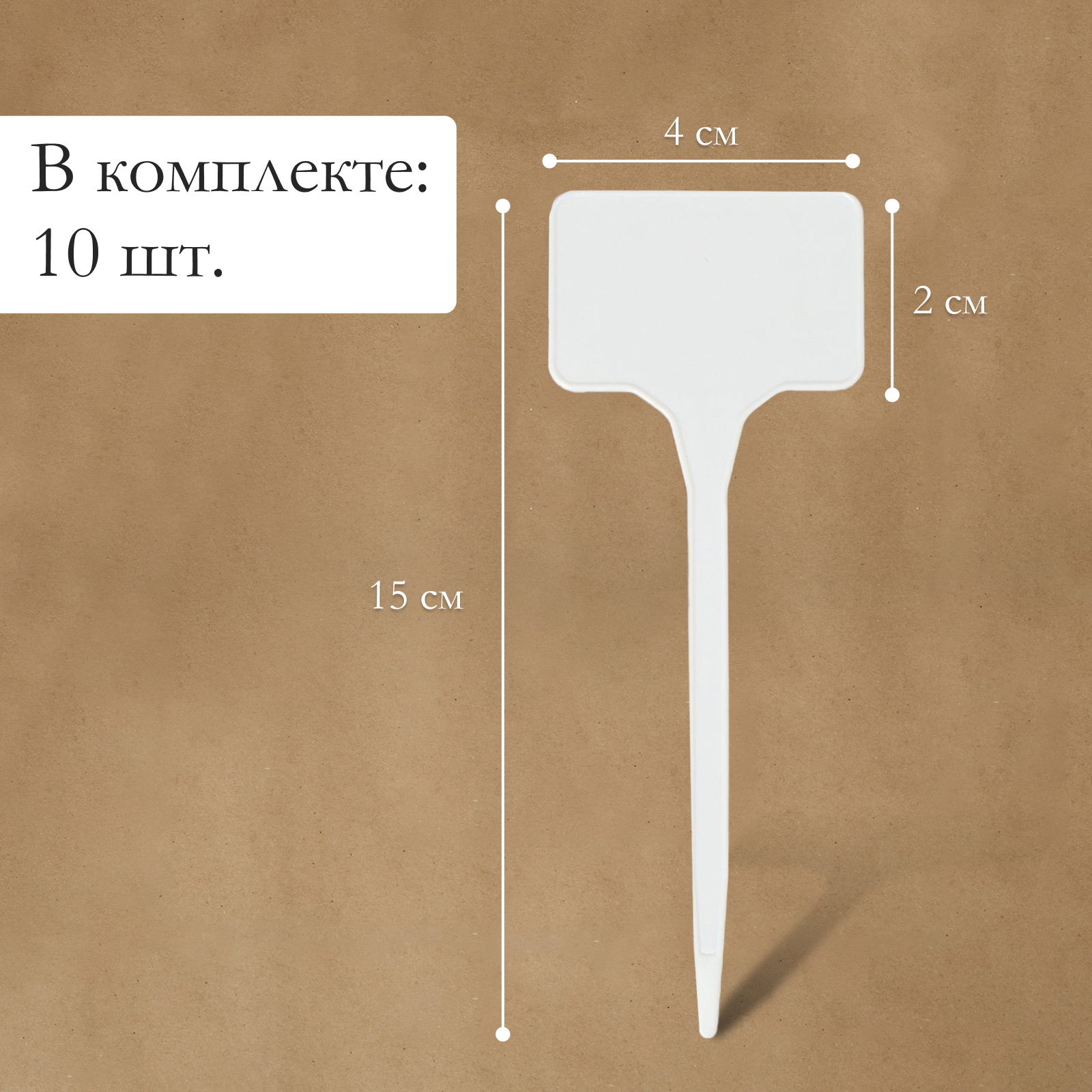 Таблички садовые, для маркировки растений, 15 см, набор 10 шт., маркер, пластик, белые, greengo. Таблички пригодятся, чтобы записать сорт растения, дату высадки или другие важные заметки о растении. Преимущества Таблички подходят для маркировки рассады, комнатных и садовых растений.У них достаточно места, чтобы подписать маркером сорт и дату посадки растений.Устойчивы к влаге: не гниют и не портятся в почве.Таблички устойчивы к УФ-излучению и не будут выгорать на солнце.Надёжно устанавливаются в почву.Можно использовать: для рассады;для комнатных растений;для саженцев в огороде и теплице.Набор:Да|Цвет:Белый|Высота, см:15|Материал:Пластик|Страна:Китай  развернуть описание ▼