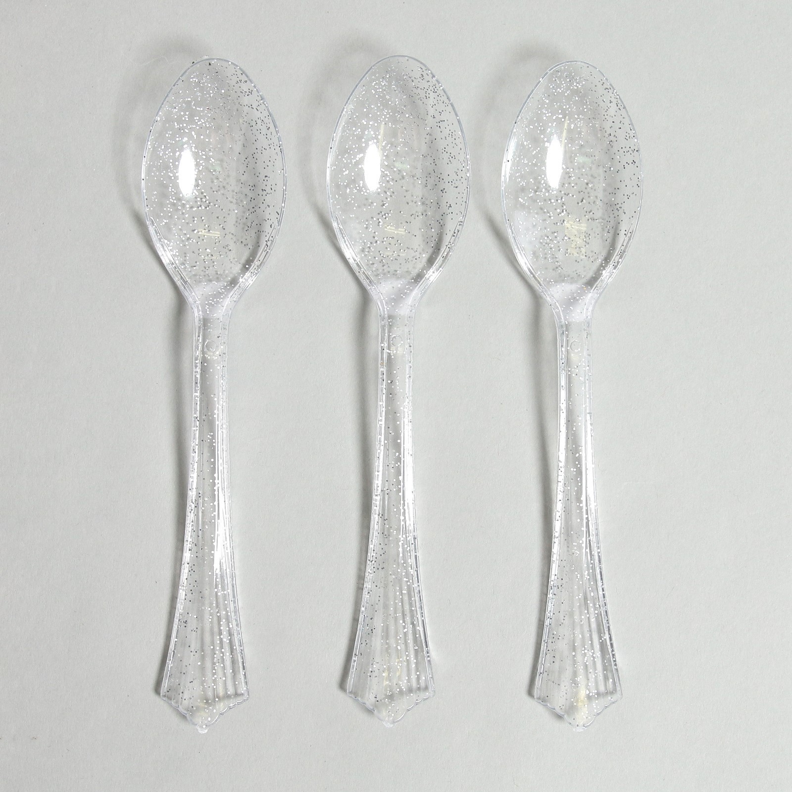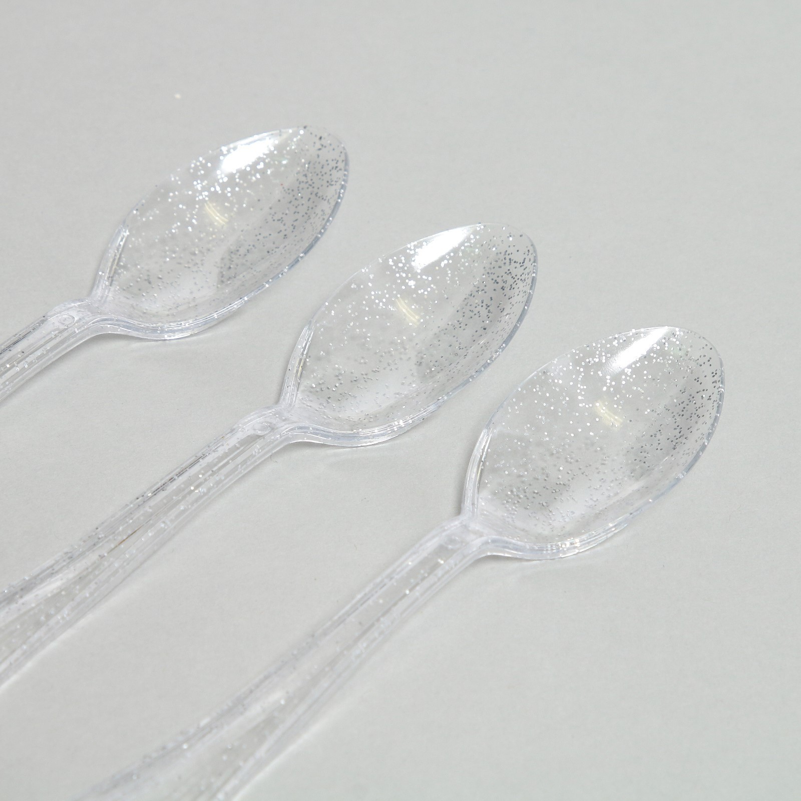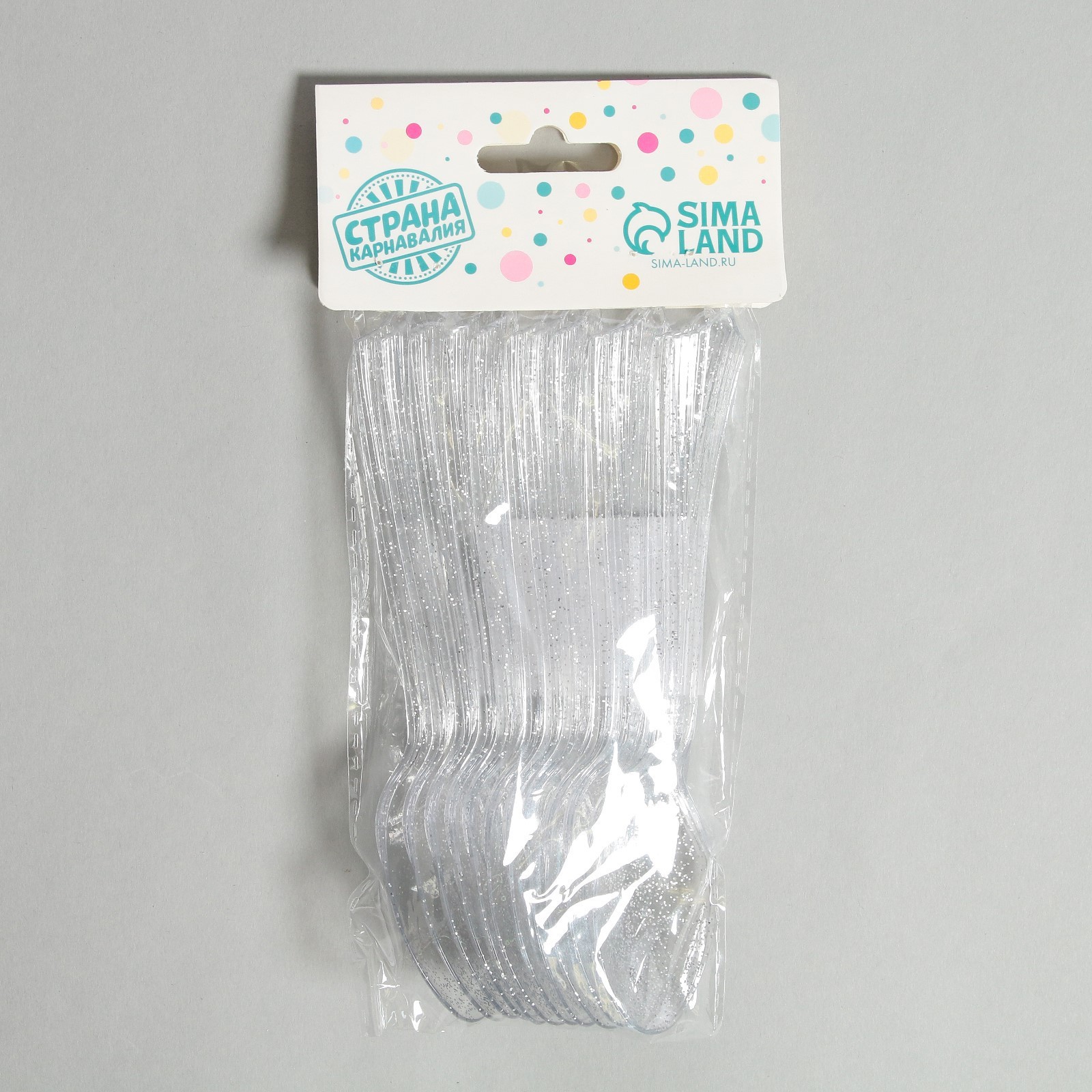 Ложки пластиковые «блеск», в наборе 12 штук, цвет серебро. Одноразовые столовые приборы удобны в использовании: они лёгкие и компактные, поэтому отлично подойдут для пикника на природе. К тому же такую посуду не надо мыть, а значит, можно наслаждаться трапезой и не задумываться о предстоящей уборке. Цвет: Прозрачный Цвет: Серебристый В наборе, шт.: 12 Количество персон: 12 tnved: 3924100000 Материал: Пластик Вид: Ложки  развернуть описание ▼