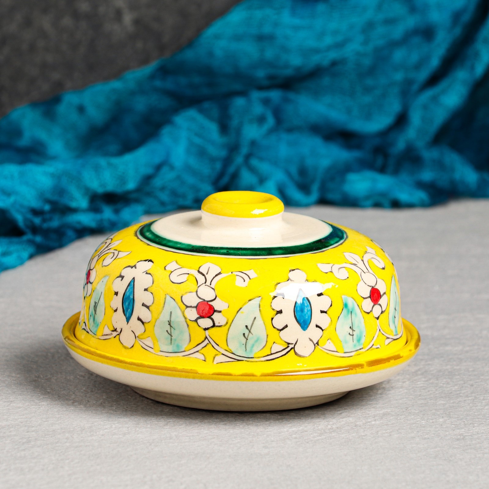 Масленка риштанская керамика "узоры", 13 см, желтая 9093595