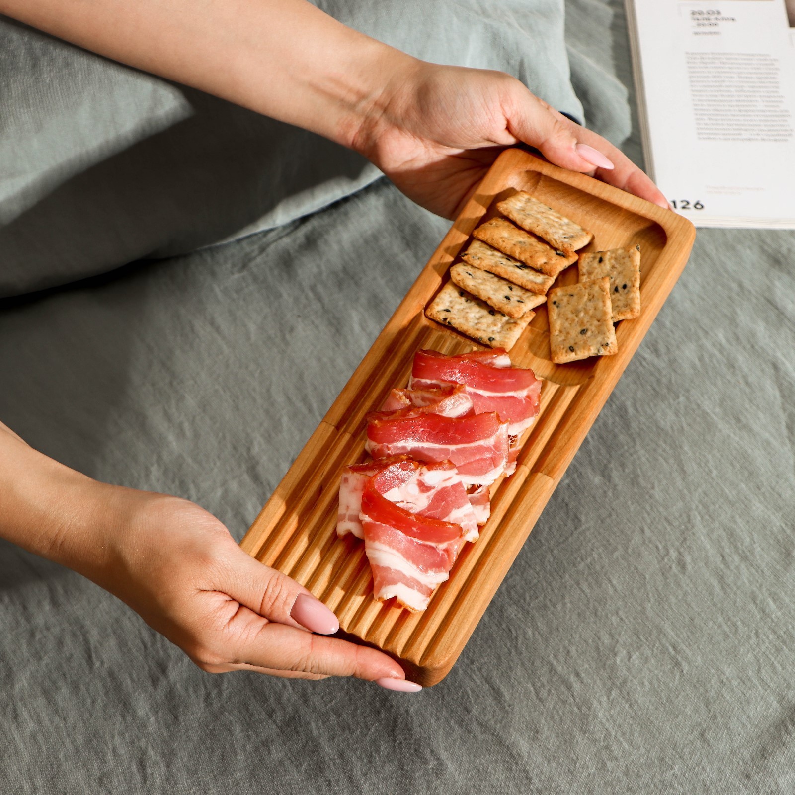 Доска разделочная для подачи и сервировки с менажницей Adelica, 28x10x1,8 см, берёза