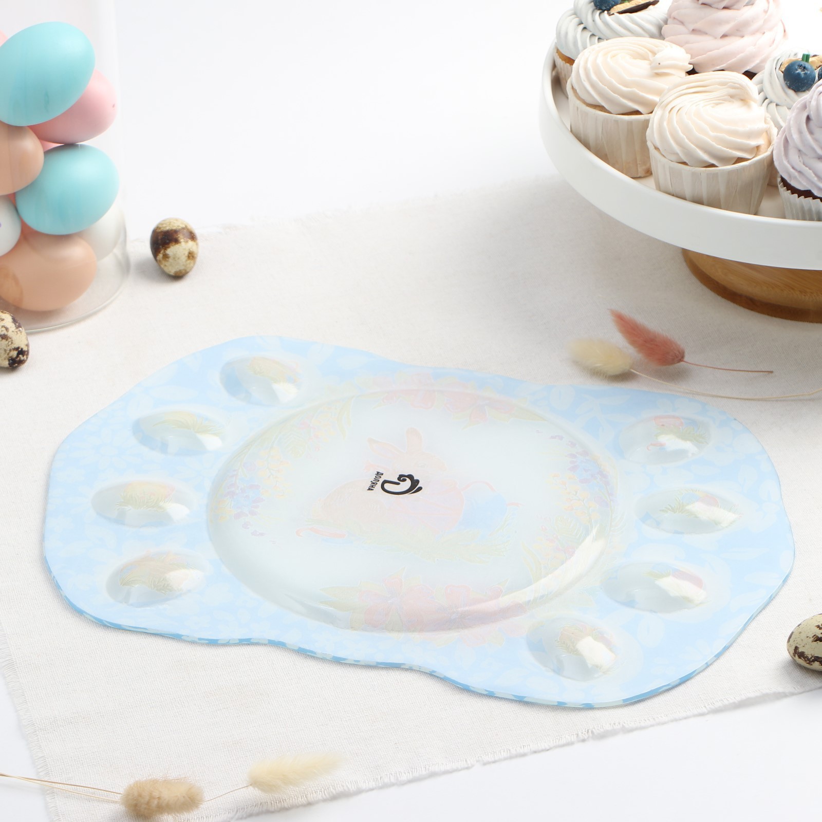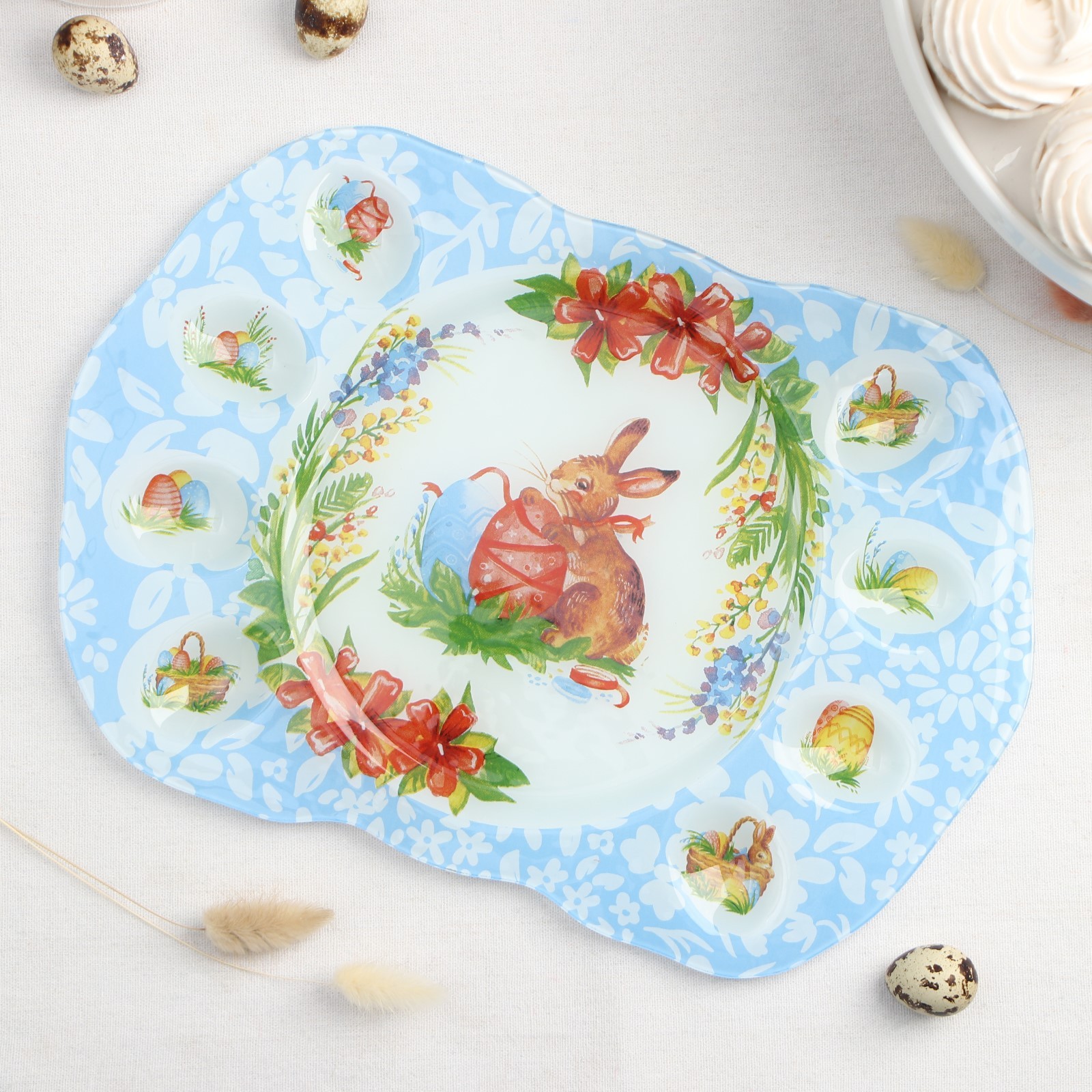 Подставка стеклянная для яиц доляна «праздничный кролик», 37x24,5 см, 8 ячеек
