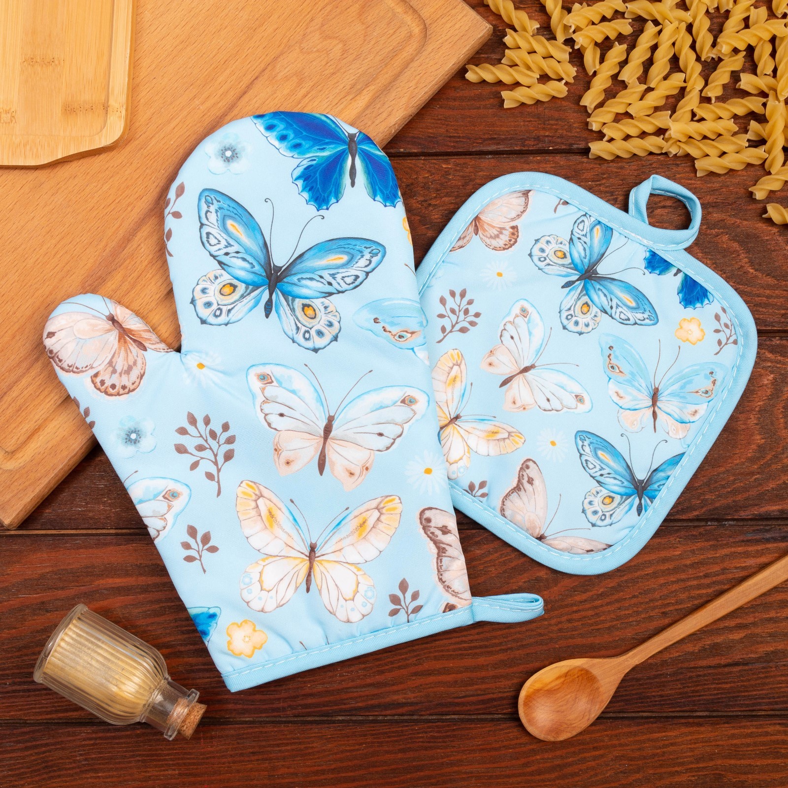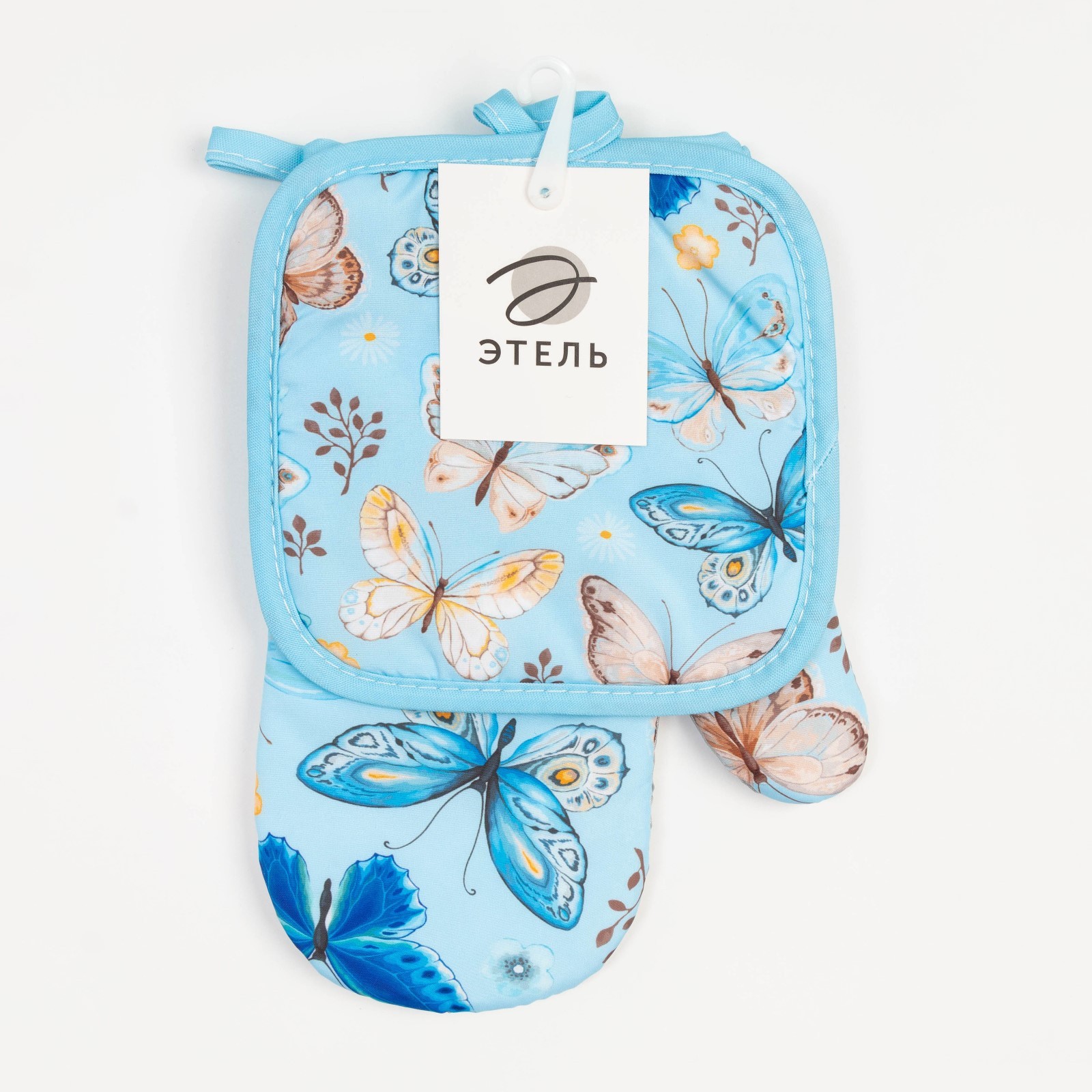 Кухонный набор 2 прихватки этель «бабочки» , прихватка 17х17 см, варежка 24х16 см, 100% п/э