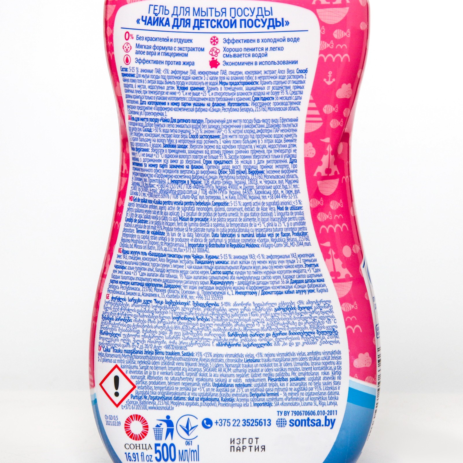 Гель для мытья посуды, чайка, "для детской посуды", 500 мл