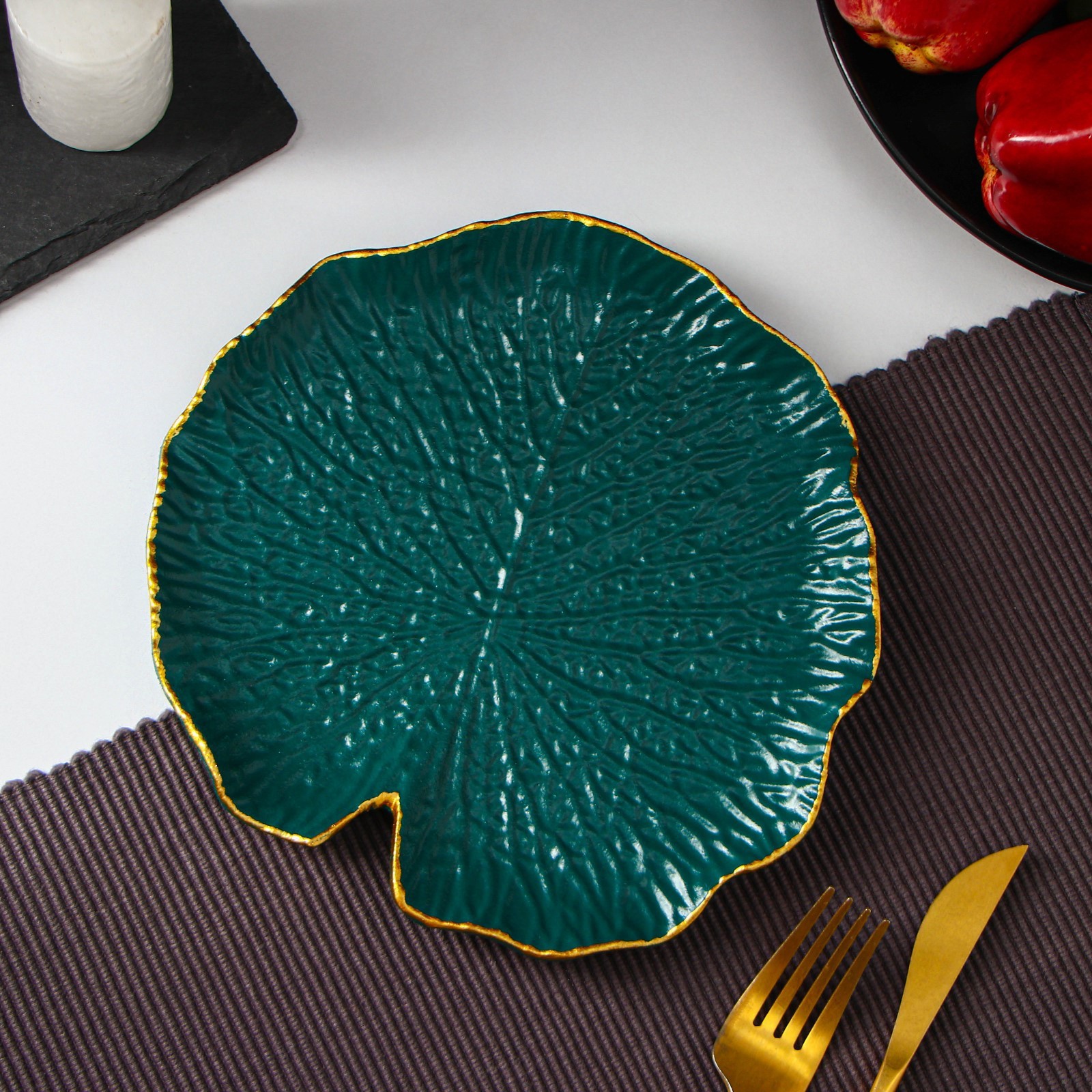 Блюдо для фруктов доляна «кувшинка», 20 19 см, зелёное. Фактурное блюдо можно использовать не только для интересной подачи сухих закусок, свежих фруктов и овощей, но и в качестве декоративного элемента в интерьере. Например, разместить изделие на открытой полке, закрепить на стене или комоде. Плоская чаша подойдёт для хранения хозяйственных мелочей и бижутерии. Особенности: блюдо выполнено из МДФ;изделие нельзя мыть в посудомоечной машине;допускается только сухая чистка.Яркая посуда станет акцентом сервировки стола, она не останется без внимания гостей дома или посетителей ресторана. Набор:Нет|Цвет:Золотистый|Цвет:Зелёный|Тематика:Цветочно-растительная|Рисунок:Нет|Крышка:Нет|Вид дерева:МДФ|Материал:МДФ|Можно мыть в посудомоечной машине:Нет|Текстура:С рельефом|Страна:Китай  развернуть описание ▼