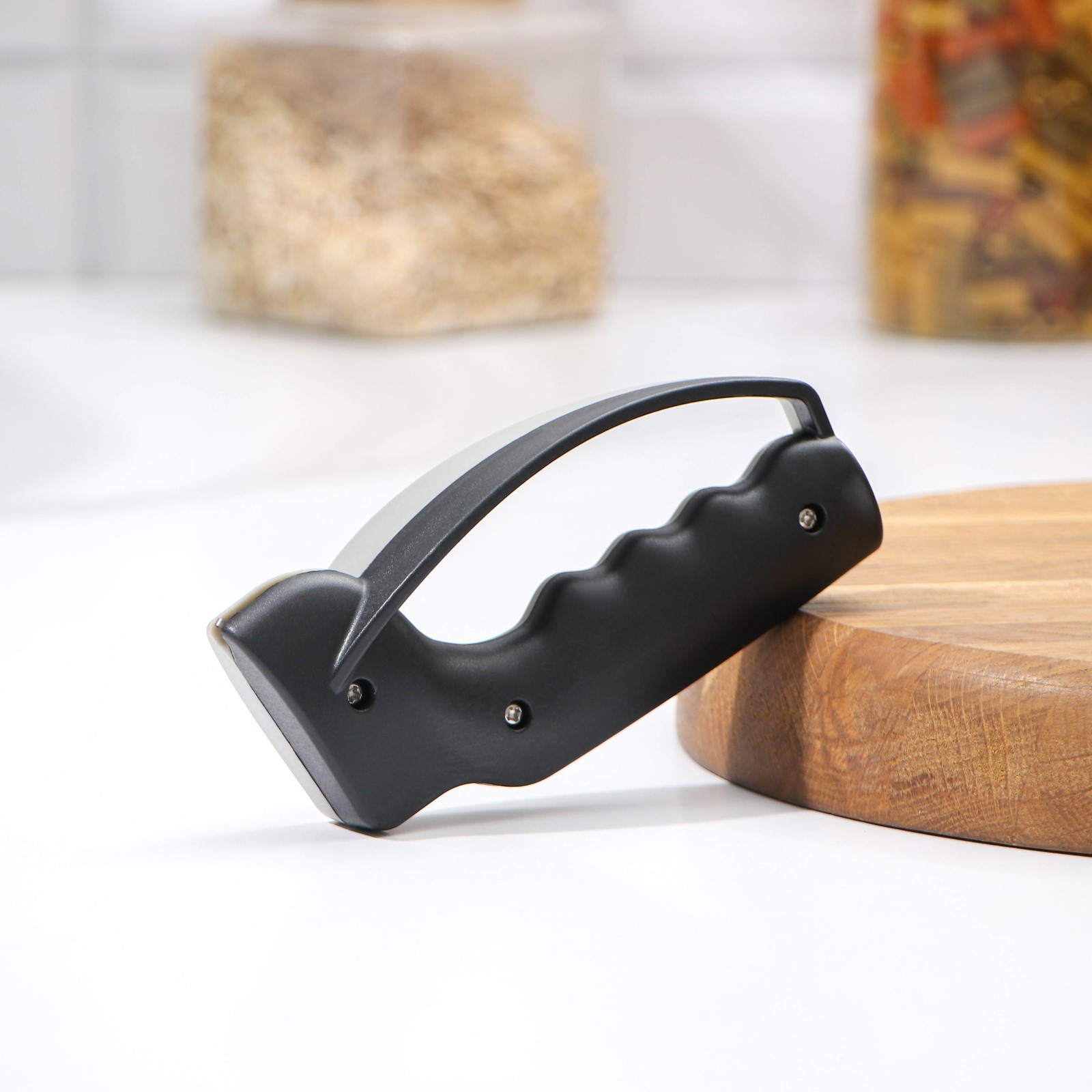 Точилка для ножей доляна «блеки», 14 см, цвет черно-серый. С ручной точилкой для ножей вы сможете менять угол заточки и работать с различными видами лезвий. Основные её особенности: занимает мало места;не нуждается в особом уходе;полностью автономный предмет;имеет высокие показатели прочности точильной поверхности. Цвет: Серебристый Количество этапов заточки: 1 Длина рабочей части, см: 14 Зернистость, грит: 240 Материал: Пластик Материал: Абразив Вид: Механическая ножеточка Запрет реализации по сегментам: 00000000208  развернуть описание ▼