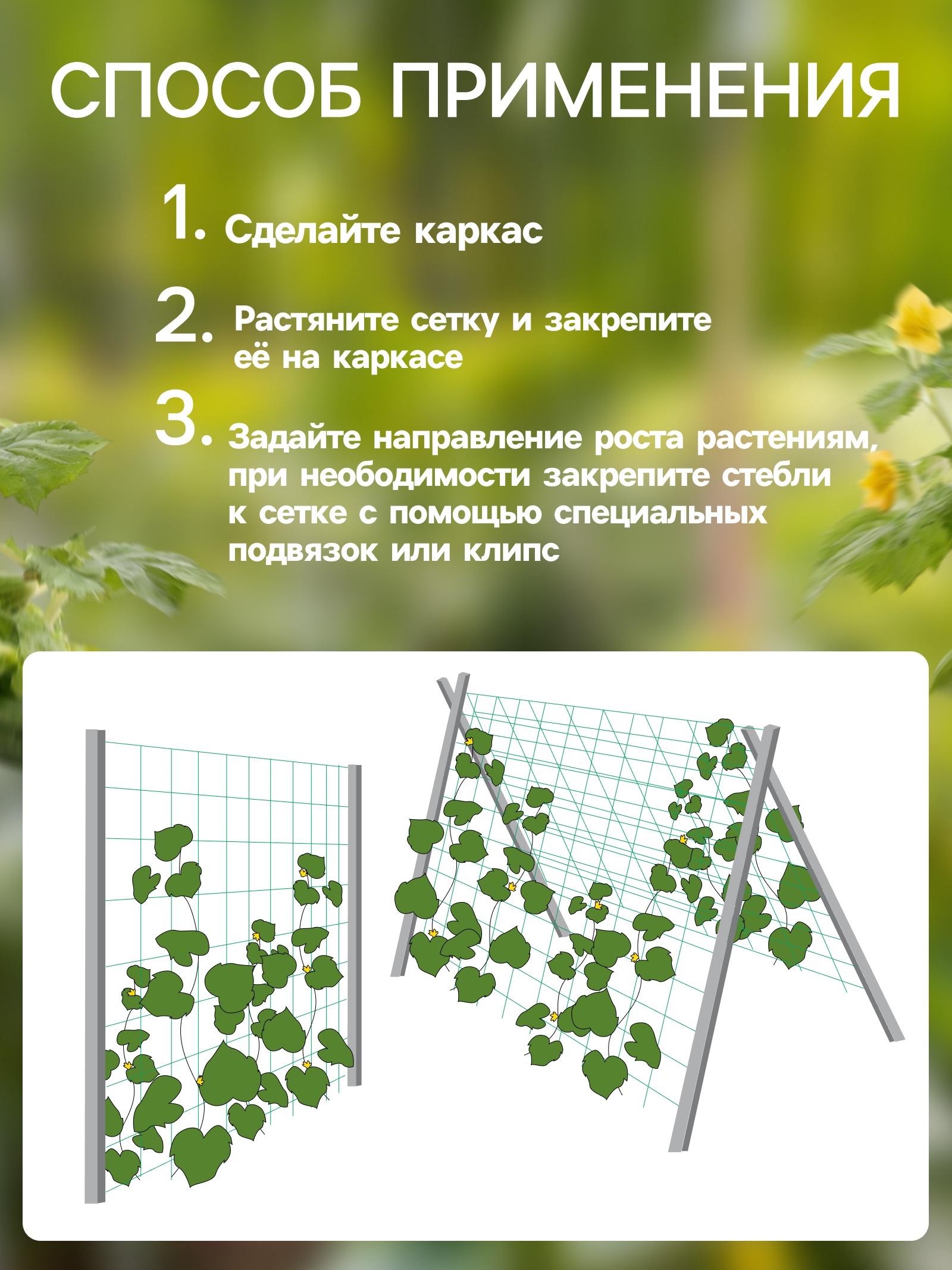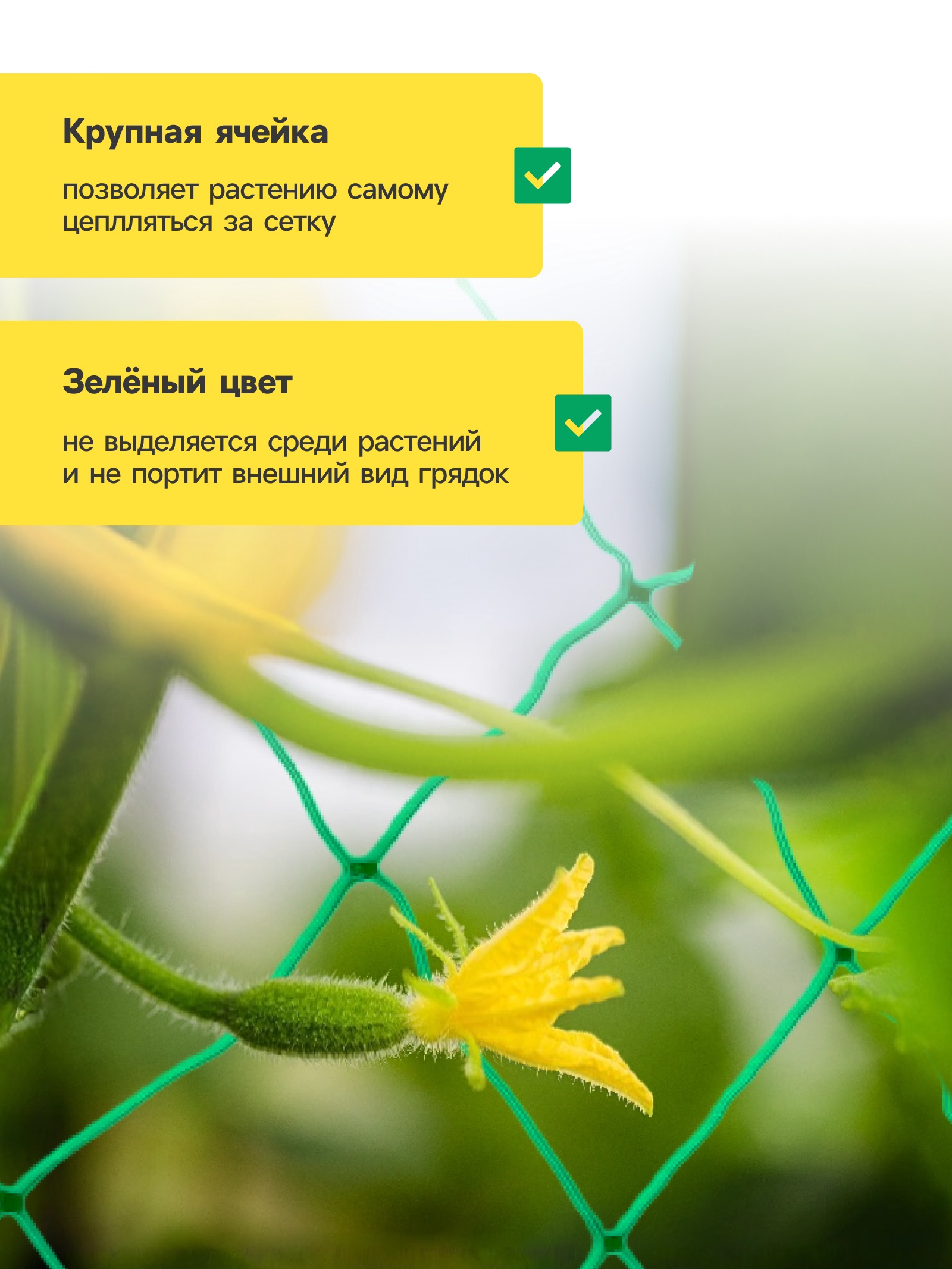 Сетка садовая для огурцов, шпалерная, 10 2 м, ячейка 15 15 см, Greengo
