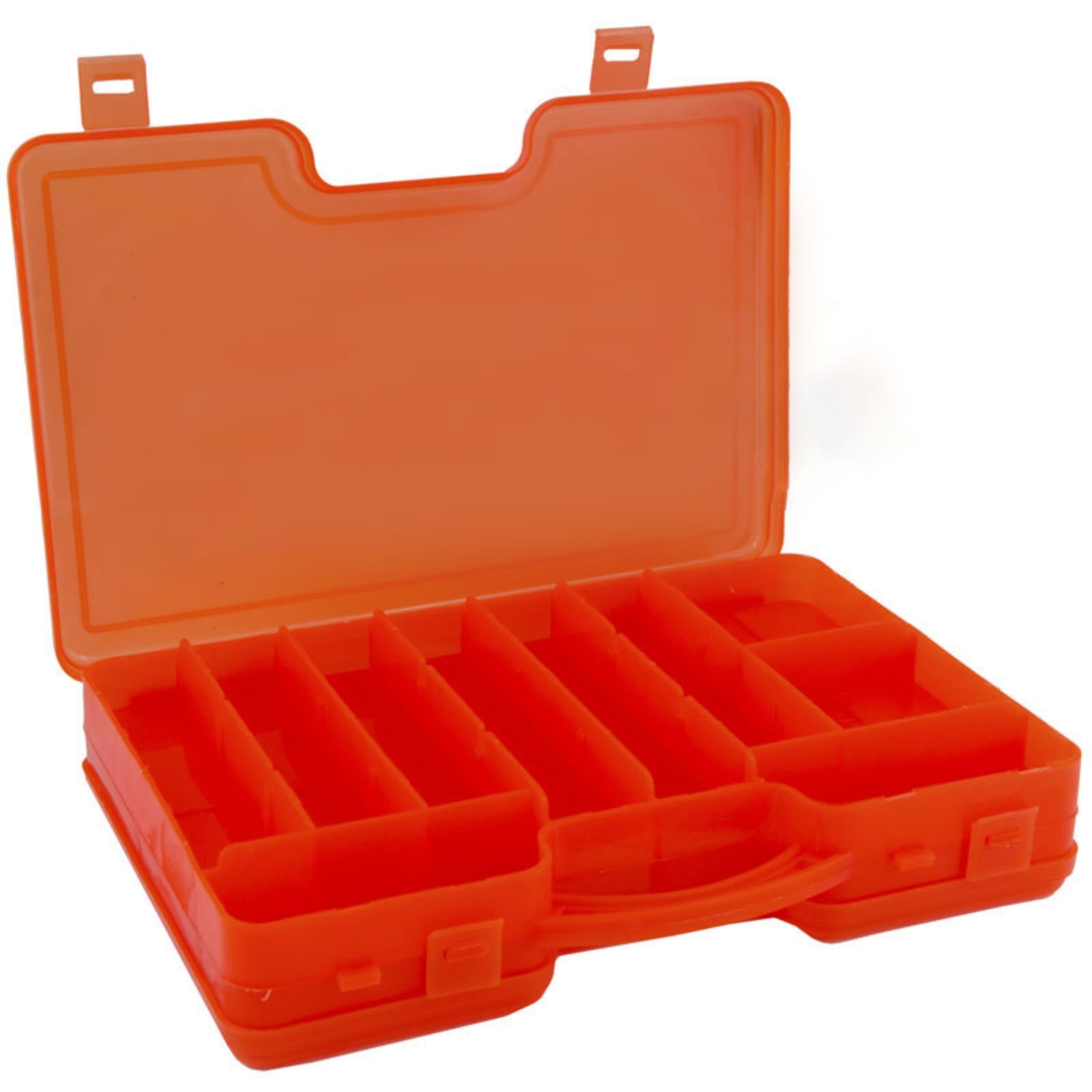 Кейс кд-1 с ручкой, двухсторонний, 290х210х60 см, цвет красный. Кейс изготовлен из качественного, ударопрочного пластика, есть удобная ручка для переноски. Две пары надежных защелок препятствуют самопроизвольному открытию кейса. Кейс идеально подходит для мелочей: грузики, блесна, поплавки, нипельные резиночки, стопорки и крючки. Кейс двусторонний, имеет 2 симметричных отделения, с помощью регулируемых перегородок можно создавать ячейки нужного размера, в которые возможно поместить более крупные снасти: воблеры и твистеры. На каждой стороне присутствует: 4 отделения (с пазами для съёмных перегородок) – 150 х 32 х 25 мм. 2 отделения (с пазами для съёмных перегородок) – 160 х 32 х 25 мм. 2 отделения 68 х 69 мм. 2 отделения 97 х 34 мм. В целом можно создать по 4 средних и 18 маленьких ячеек для мелких рыболовных принадлежностей. Количество отделений: 2 Количество ячеек: 18 Количество секций: 20 Материал: Пластик Съёмные перегородки: Да Особенности: Двусторонний Назначение: Для грузил  развернуть описание ▼