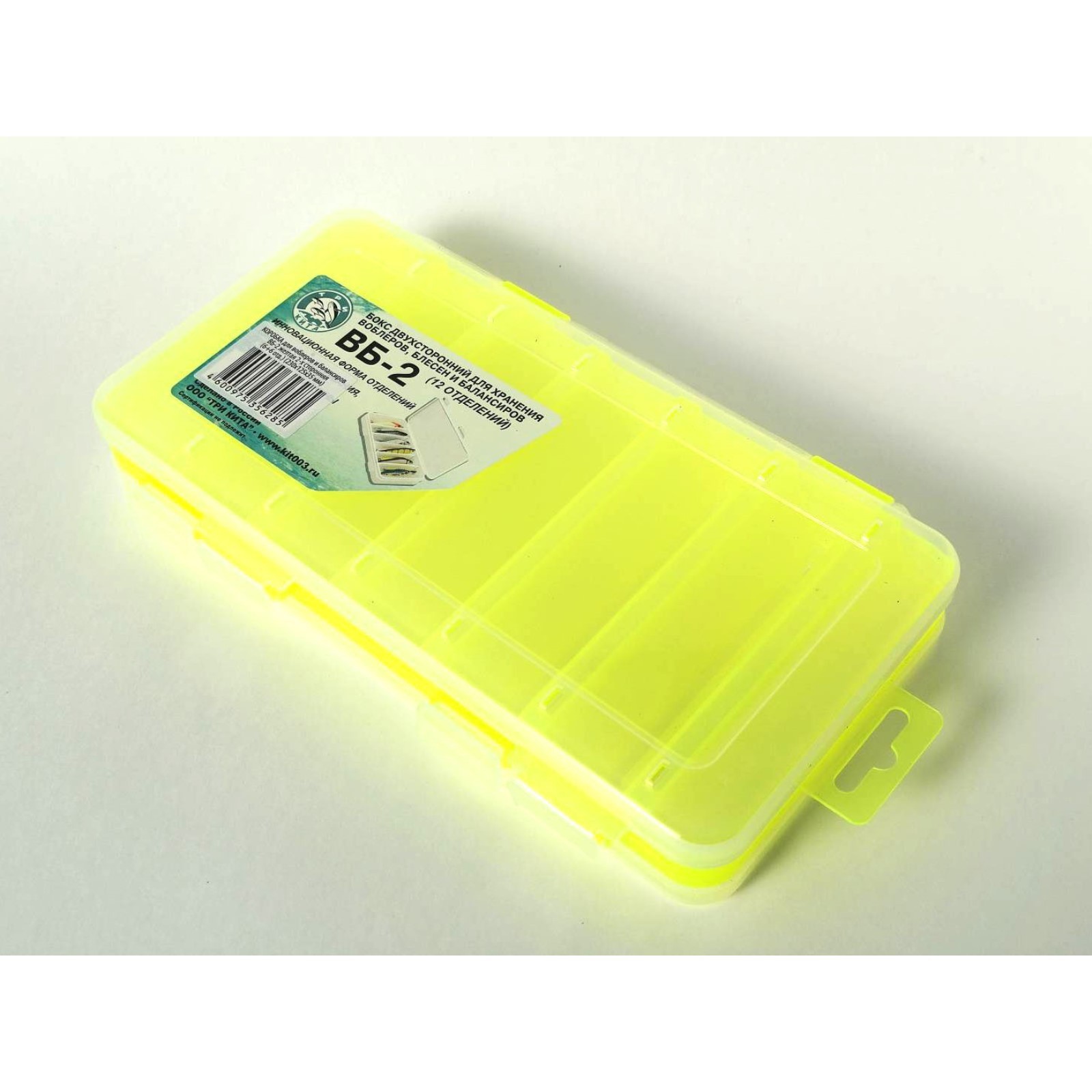 Коробка для воблеров и балансиров, 6+6 отделений, 230х125х35 мм, цвет жёлтый. Коробочка выполнена из высококачественного пластика, двусторонняя. Всего в ней 12 отделений, по 6 отсеков с каждой стороны. Закрывается плотно, полностью исключая возможность самопроизвольного открывания. Коробочка рассчитана на воблеры от 60 до 90х размеров, каждый воблер лежит в отдельной ячейке, что обеспечивает долгосрочное использование и исключает спутывание воблеров между собой. Отверстия на крышке в боксе обеспечивают вентиляцию, избавление от излишков воды, тем самым препятствуя возникновению ржавчины на металлических частях приманок. Глубина ячеек рассчитана специально под воблеры, чтобы они были погружены в ячейки и не выступали за её пределы. К коробочке прилагается петелька с отверстием для удобства переноски и крепления к рюкзаку. Количество отделений: 2 Количество секций: 12 Количество ячеек: 12 Материал: Пластик Съёмные перегородки: Нет Особенности: Двусторонний Назначение: Универсальный  развернуть описание ▼