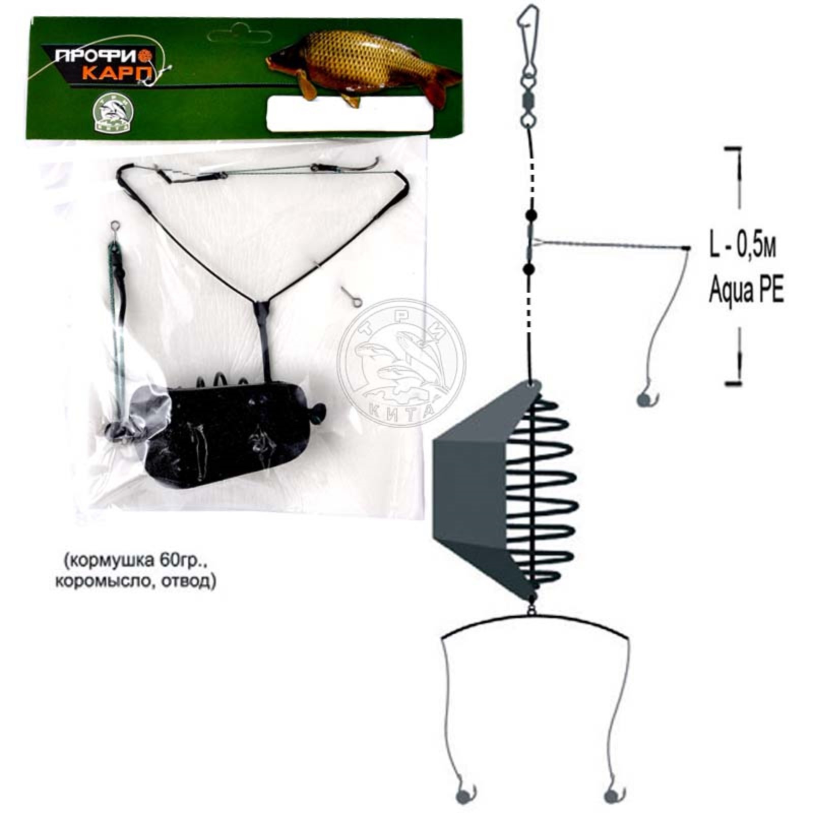 Снасть карповая, кормушка всплывающая, коромысло, отвод, 3 крючка №6, 60 г