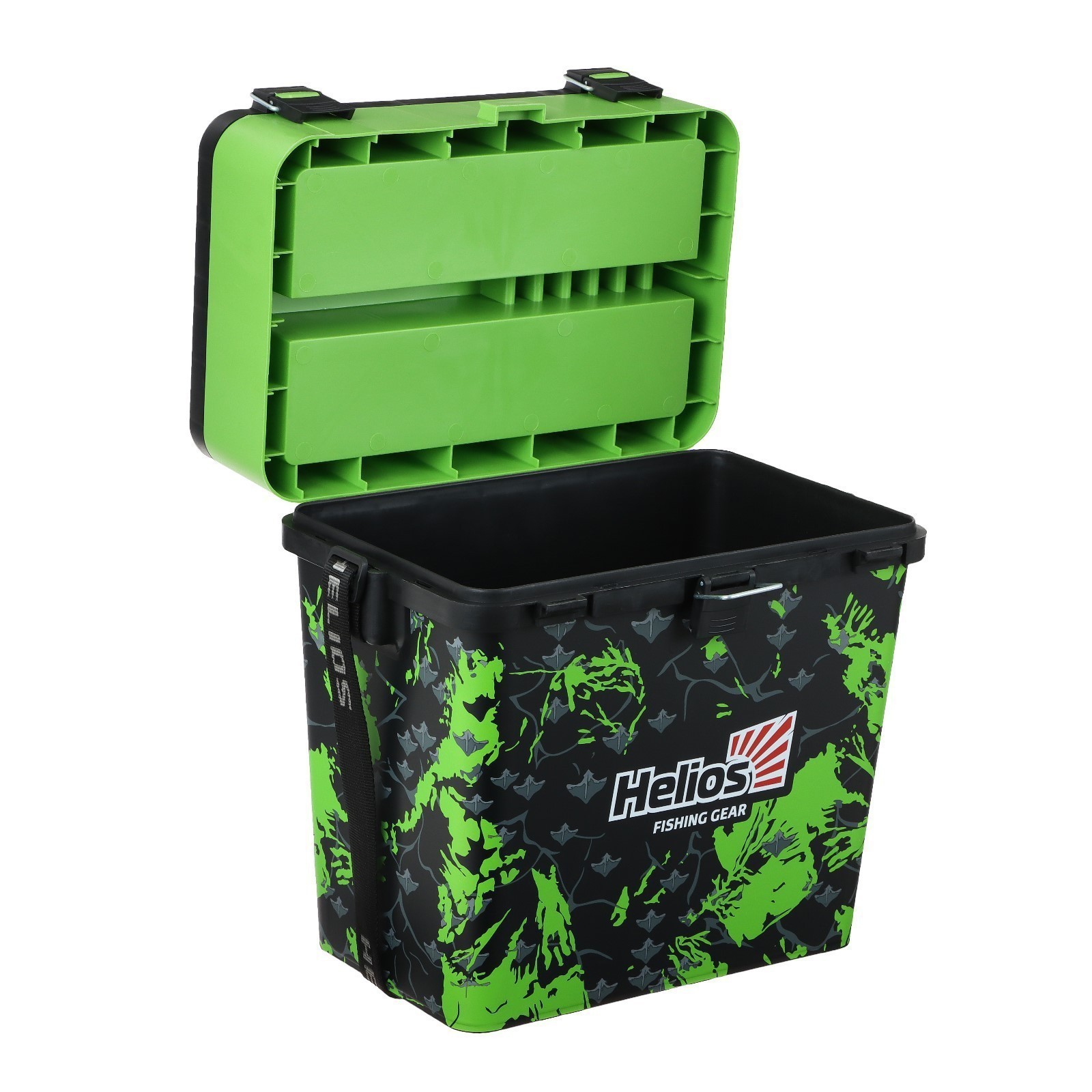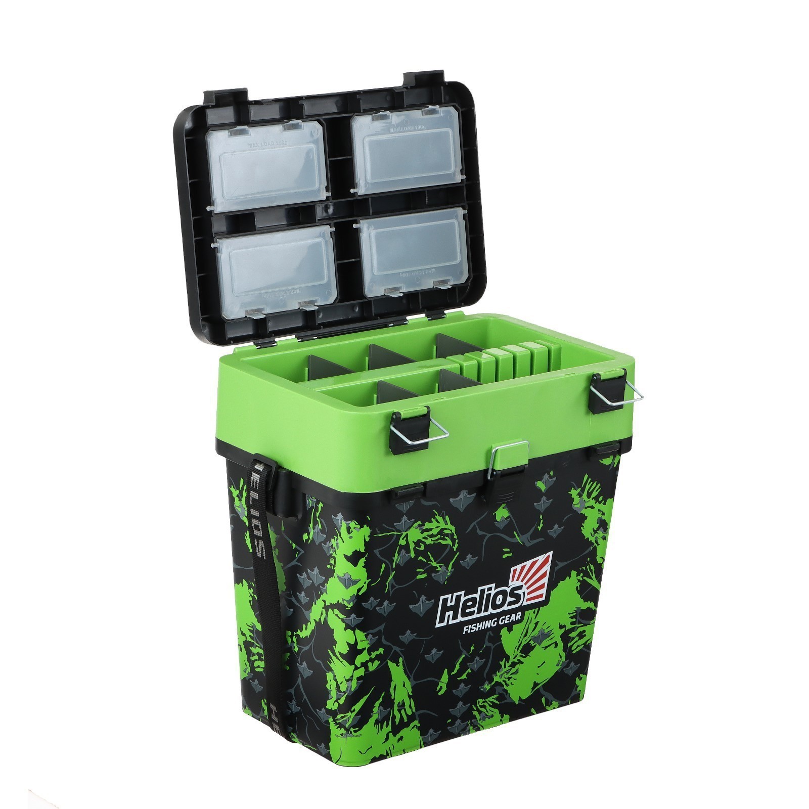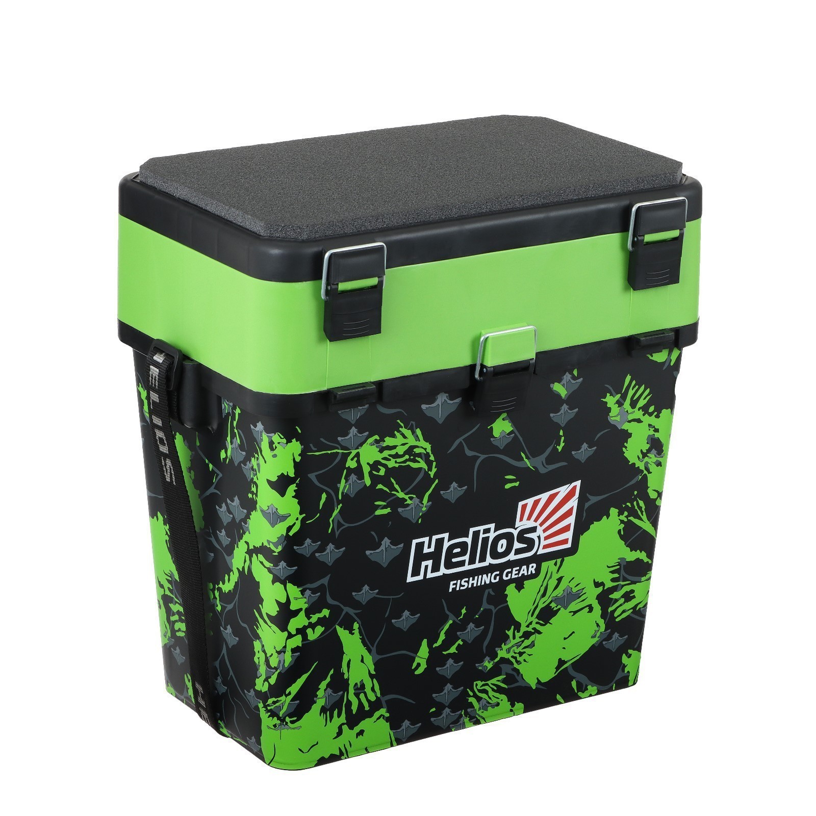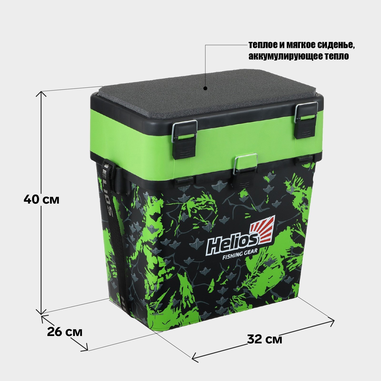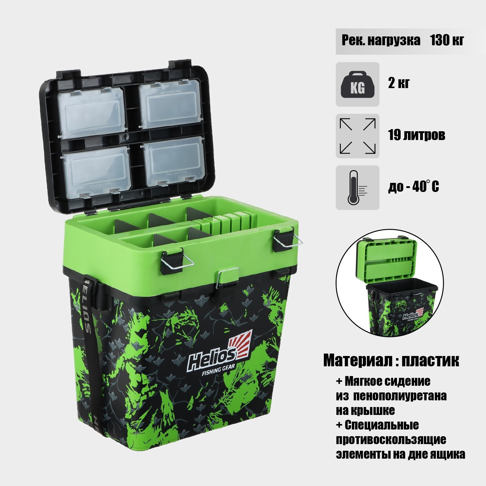 Ящик рыболовный зимний helios shark, цвет салатовый (hs-ib-19-shg). Ящик зимний рыболовный торговой марки Helios, изготовленный из ударопрочного, морозостойкого и в то же время легкого пластика, обеспечивает надежное хранение и транспортировку рыболовных снастей. Рыболовный ящик выгодно отличается среди аналогичных ярким и современным дизайном. Благодаря объему 19 литров, ящик вместит очень много полезных снастей для рыбалки. Дополнительная проставка с 2 отсеками и съемными перегородками позволяет разместить небольшие удочки и другие снасти. Основной отсек предназначен для переноски рыболовных снастей, термоса, так же удобен для перевозки улова. На внутренней стороне крышки размещены 4 отделения с полупрозразчными крышечками для хранения мелких аксессуаров. Удобные и надежные замки гарантируют плотное прилегание крышки к основному отсеку ящика. Пластиковый каркас выдерживает низкие температуры до -40С, не пропускает и не впитывает воду. Мягкое незамерзающее сиденье на крышке ящика, аккумулирующее тепло, позволит рыболову комфортно рыбачить с ящика долгое время. На дне ящика расположены специальные насечки против скольжения по льду. Летом подобный ящик несомненно пригодится для береговой рыбалки, когда необходимо иметь все снасти под рукой. parts count: 0 Материал: Пластик Температурное ограничение: Нет Вид: Ящик Сезон рыбалки: Зимняя  развернуть описание ▼