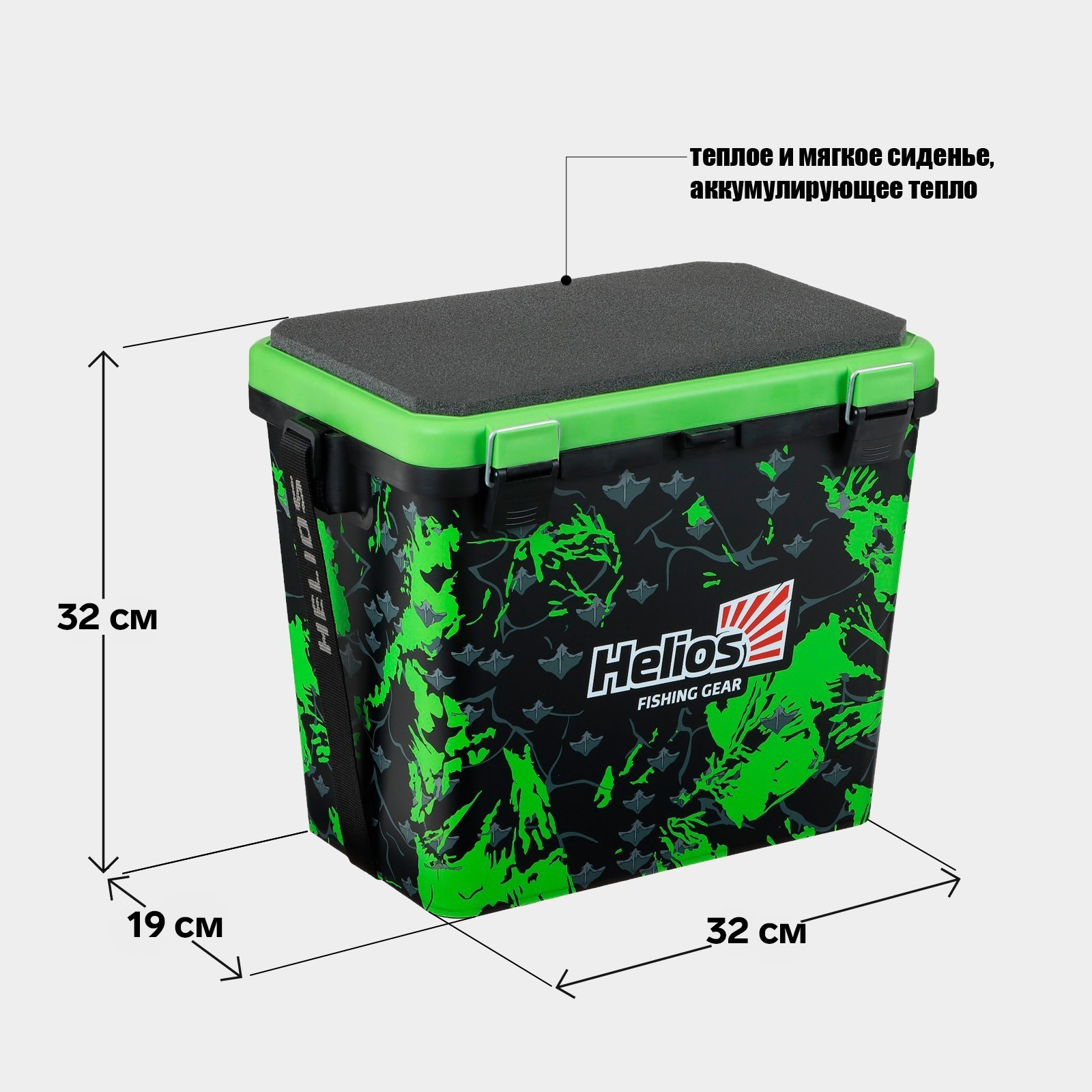 Ящик рыболовный зимний helios shark односекционный, цвет салатовый (hs-ib-19-shg-1). Ящик зимний рыболовный торговой марки Helios, изготовленный из ударопрочного, морозостойкого и в то же время легкого пластика, обеспечивает надежное хранение и транспортировку рыболовных снастей. Рыболовный ящик выгодно отличается среди аналогичных ярким и современным дизайном. Благодаря объему 19 литров, ящик вместит очень много полезных снастей для рыбалки. Дополнительная проставка с 2 отсеками и съемными перегородками позволяет разместить небольшие удочки и другие снасти. Основной отсек предназначен для переноски рыболовных снастей, термоса, так же удобен для перевозки улова. На внутренней стороне крышки размещены 4 отделения с полупрозразчными крышечками для хранения мелких аксессуаров. Удобные и надежные замки гарантируют плотное прилегание крышки к основному отсеку ящика. Пластиковый каркас выдерживает низкие температуры до -40С, не пропускает и не впитывает воду. Мягкое незамерзающее сиденье на крышке ящика, аккумулирующее тепло, позволит рыболову комфортно рыбачить с ящика долгое время. На дне ящика расположены специальные насечки против скольжения по льду. Летом подобный ящик несомненно пригодится для береговой рыбалки, когда необходимо иметь все снасти под рукой. Материал: Пластик Температурное ограничение: Нет Вид: Ящик Сезон рыбалки: Зимняя  развернуть описание ▼
