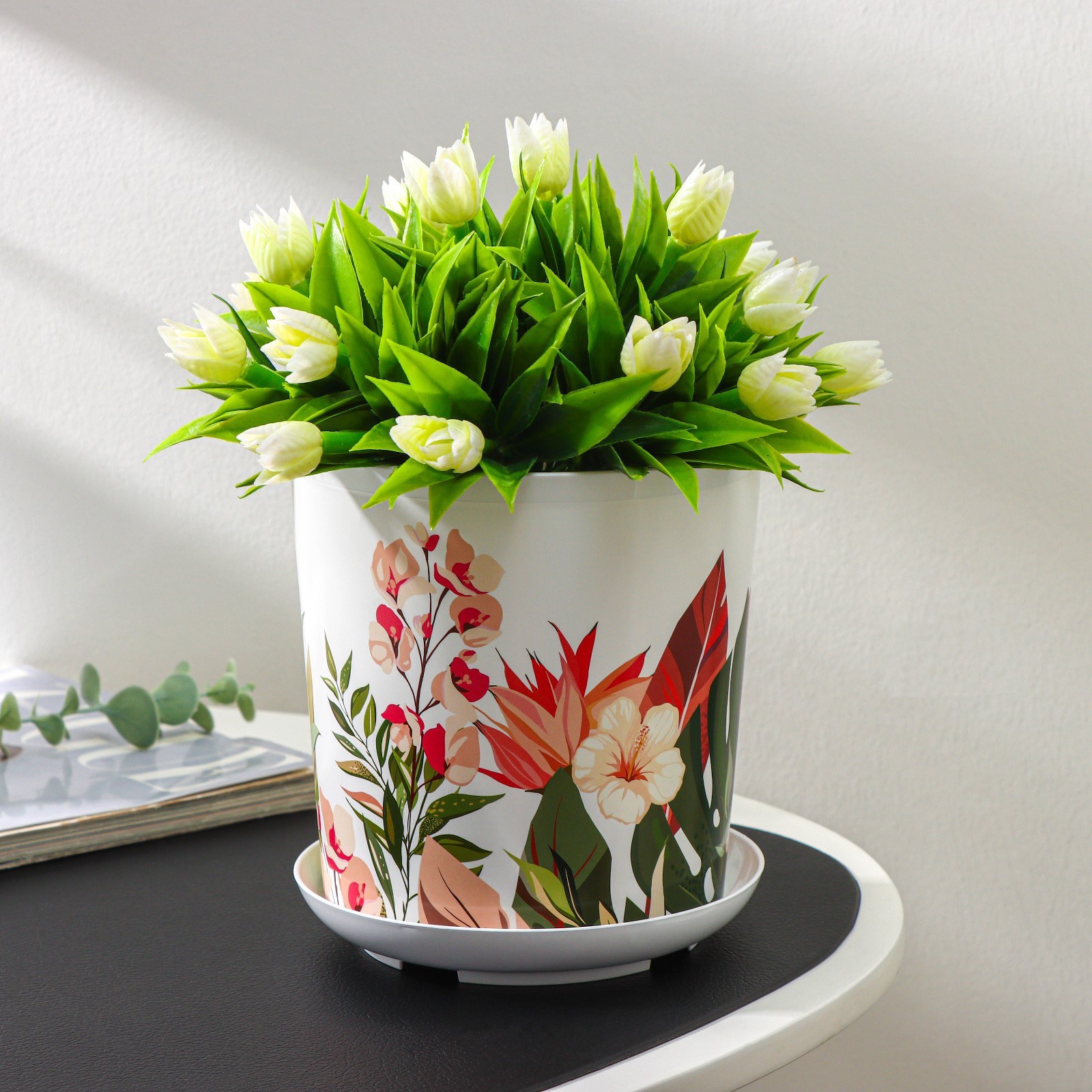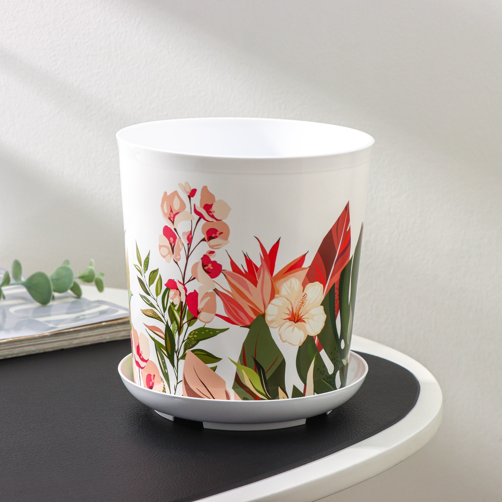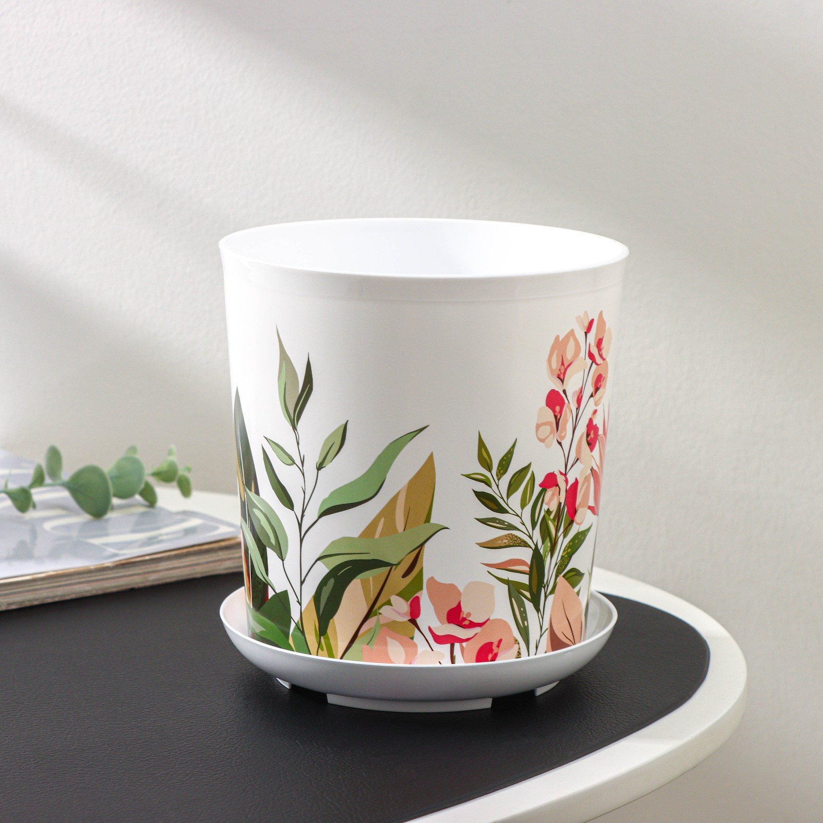 Горшок для цветов с поддоном доляна «тропический лес», 1,6 л, d=14 см, h=15,5 см, цвет белый. Представляем вам цветочные горшки от собственной торговой марки Доляна — идеальное решение для создания уютной атмосферы в вашем доме или офисе. Наши горшки изготовлены из высококачественного пластика, который обеспечивает долговечность и устойчивость к внешним воздействиям. Горшки имеют стильный дизайн и представлены в различных размерах и цветах, что позволяет подобрать идеальный вариант для любого интерьера. Благодаря наличию поддона, вы можете не беспокоиться о том, что вода прольётся на подоконник или мебель. Наши цветочные горшки станут прекрасным дополнением к вашему домашнему или офисному интерьеру. Они помогут создать уютную атмосферу и подчеркнуть вашу индивидуальность. Преимущества наших цветочных горшков: Изготовлены из качественного пластика.Имеют стильный дизайн.Представлены в разных размерах и цветах.Оснащены поддонами для защиты поверхностей от влаги.Доступны по цене.Не упустите возможность приобрести качественные цветочные горшки по доступной цене! Создайте уют и гармонию в своём доме или офисе с помощью наших горшков. Цвет:Белый|Форма:Круглая|Диаметр, см:14|Высота, см:15.5|Объём, л:1.6|Вид установки:Настольное|Рисунок:Да|Материал:Пластик|Можно оставлять зимой на улице:Нет|Поддон в комплекте:Да|Страна:Россия  развернуть описание ▼