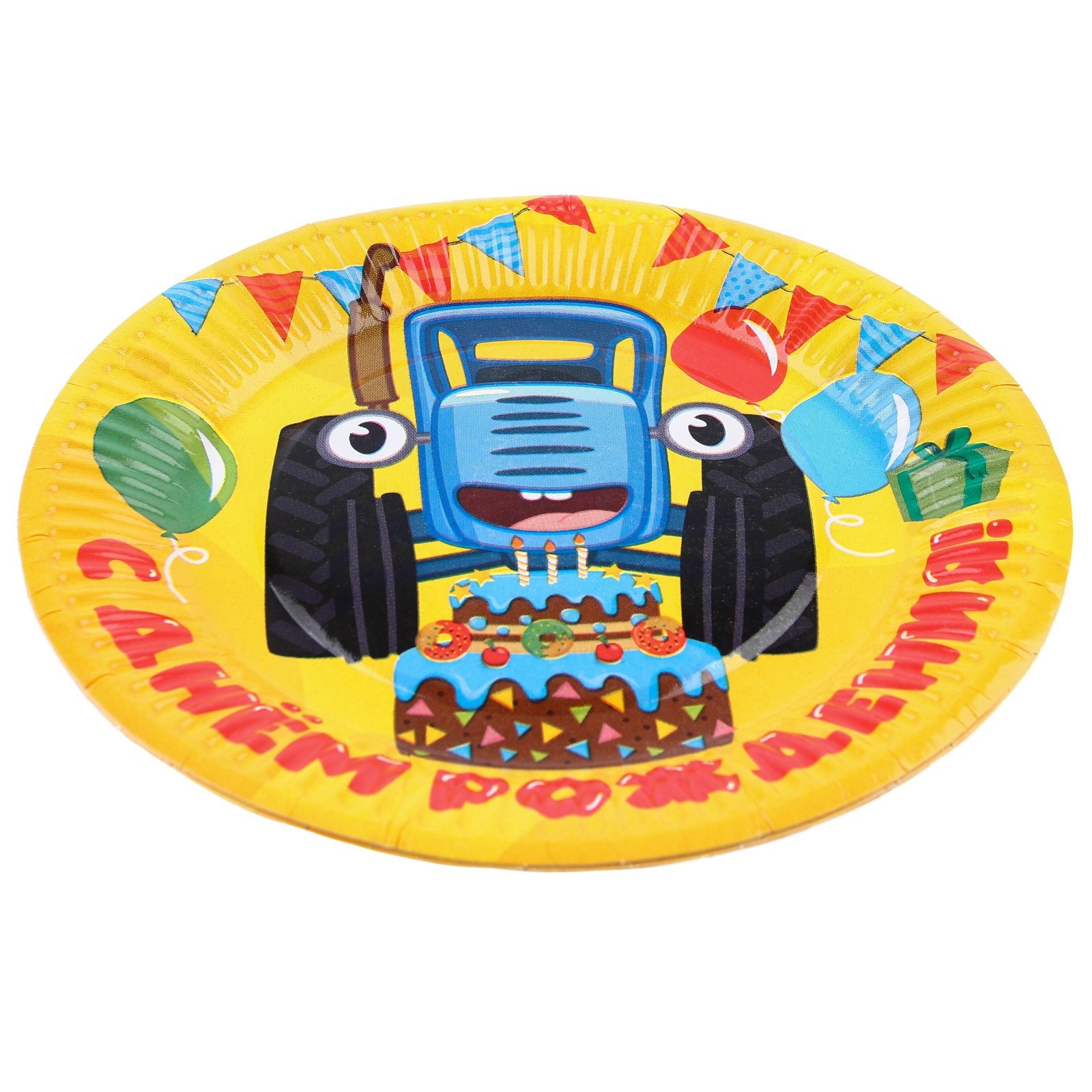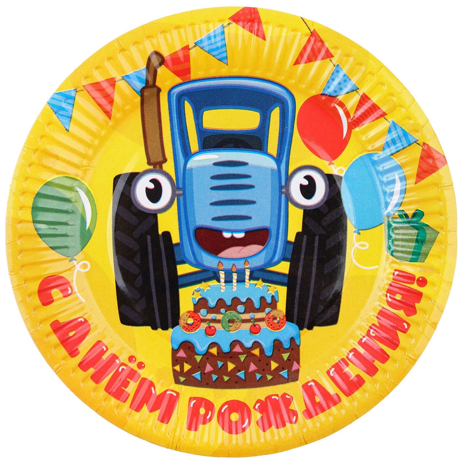Тарелка бумажная "с днем рождения!", 18 см, синий трактор